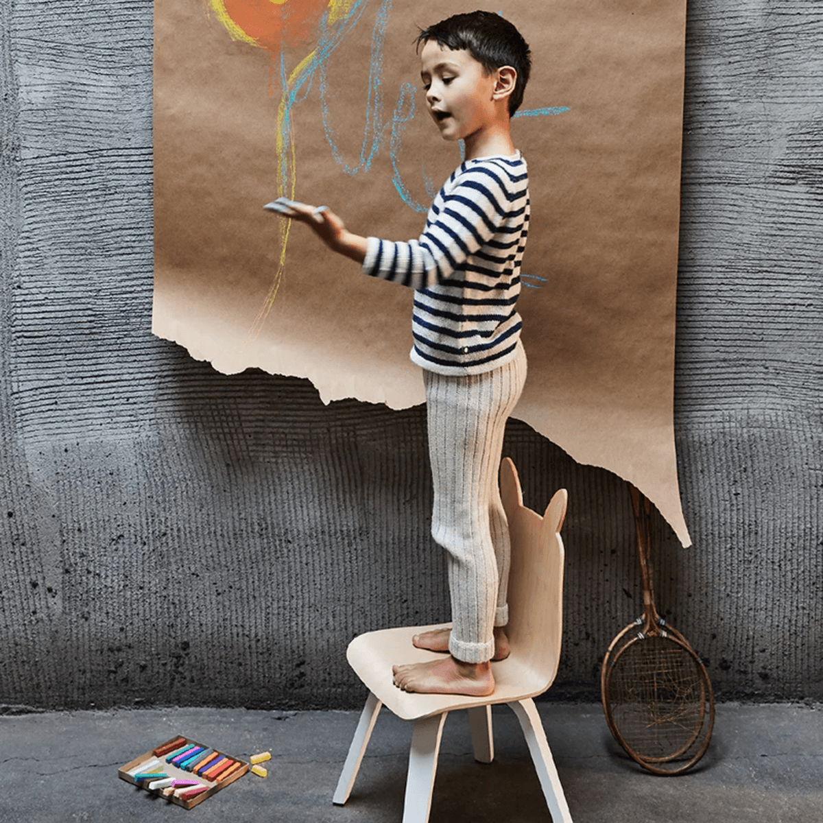 These adorable rabbit-eared bent plywood chairs are sold in sets of two. Fitting perfectly with the Oeuf play table, they are sure to inspire a bit of extra fun while your child creates, snacks, or reads in their very own, kid-sized chair