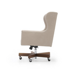 Say hello to the Simon Office Chair, a blend of classic elegance and modern functionality, featuring a stately winged back, plush seating, and a stylish five-star base with smooth-rolling casters, making your workday as comfortable as it is chic.