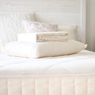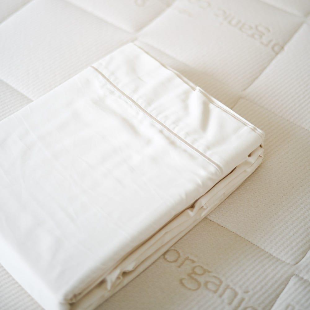 The Naturepedic Organic Luxury Sheet Set includes 100% certified organic cotton sateen fitted and flat sheets plus one or two pillow cases. This premium sheet set comes in a natural color and fits mattresses up to 15" deep. A subtle and classic finishing touch for any decor. Approximately 400 thread count.