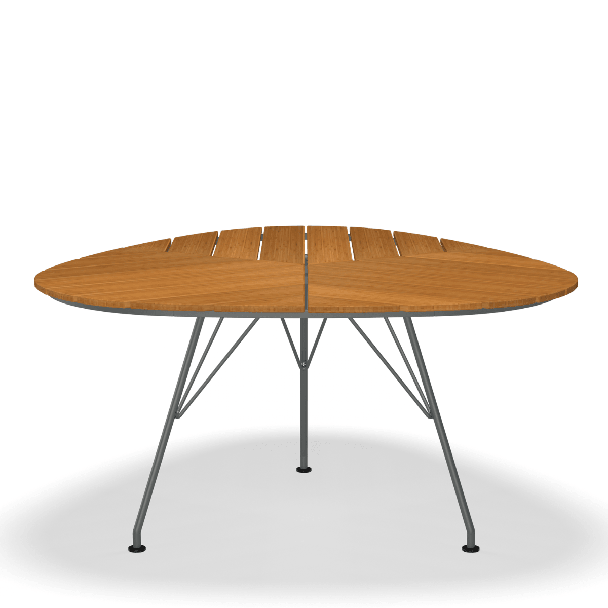 A beautiful garden table that really looks like a leaf. Its triangular form and unique construction makes it possible to seat 9 people around the table. The bamboo table top is pre-oiled and ready to use.