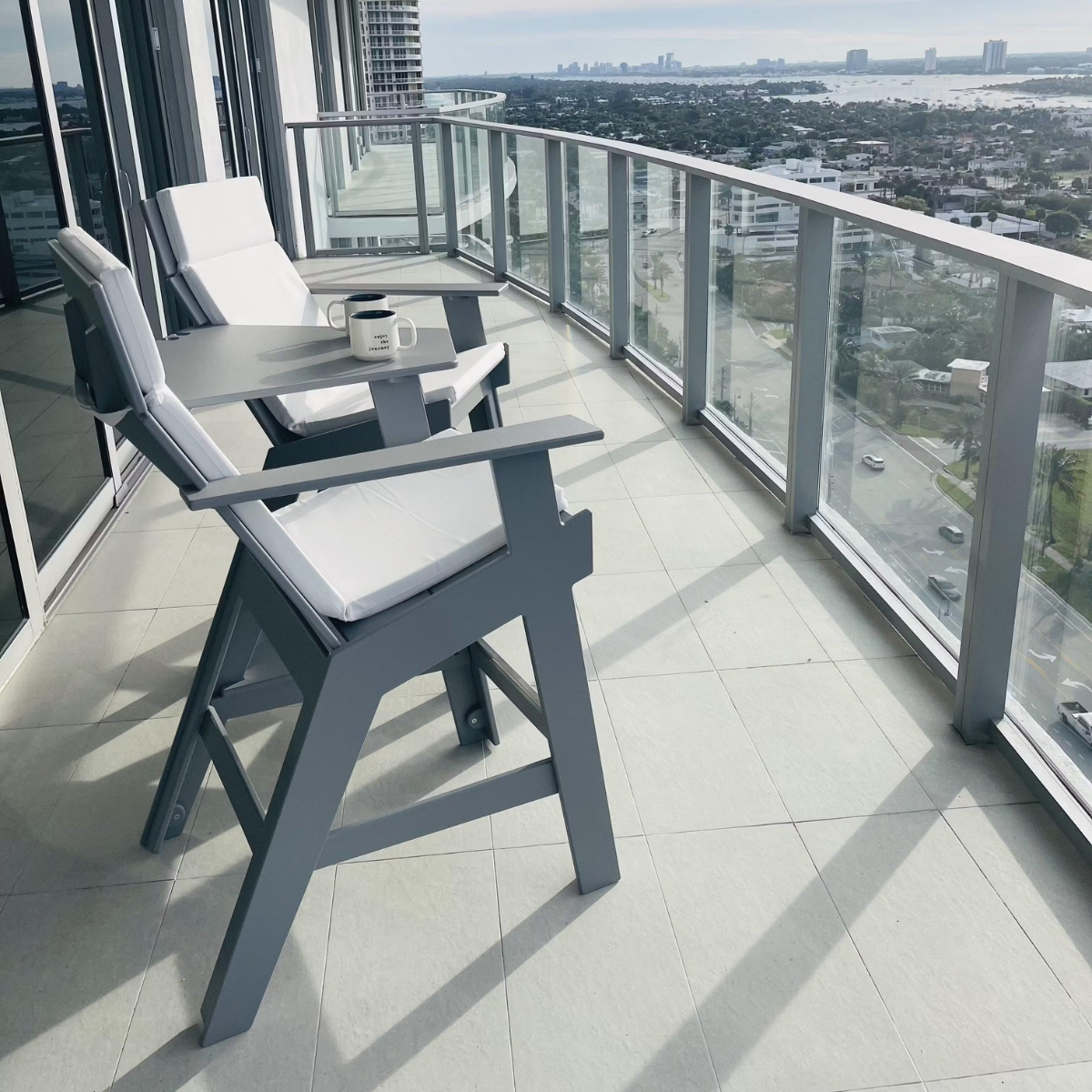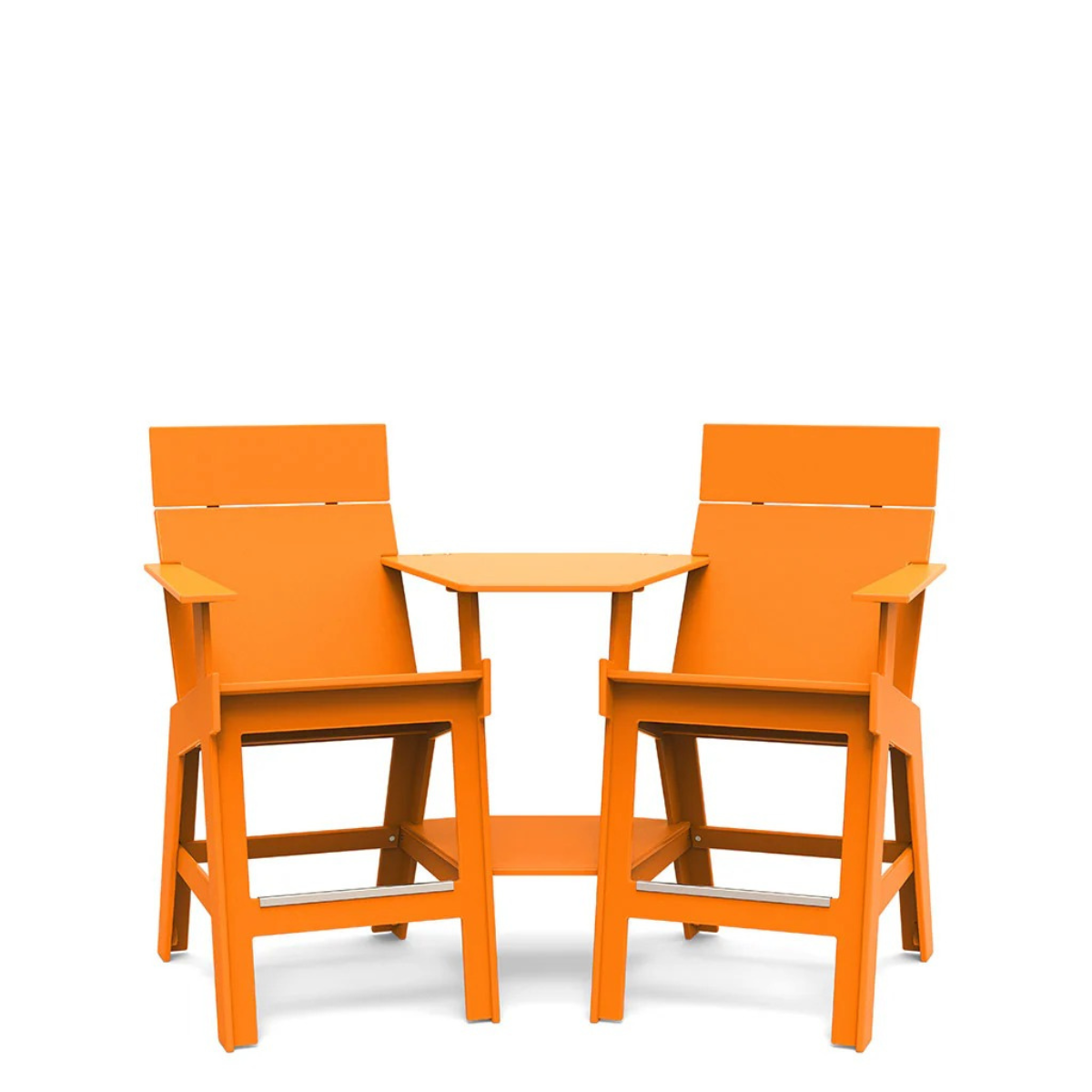 Lollygag at a whole new level with your friends and family in the Lollygagger Hi-Rise Chairs with Bridge set! Connected by a table and shelf, this pair of Hi-Rise chairs are ready for unobstructed views over your balcony or deck railing while holding your bag, towels, and of course your beverage of choice.