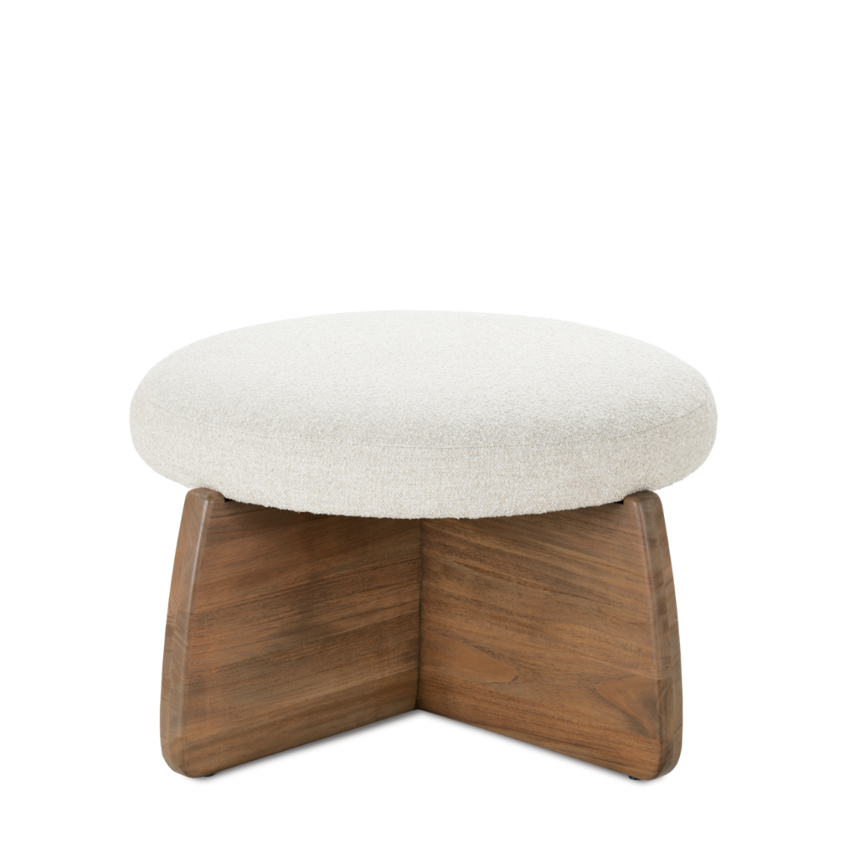 The Nova Cocktail Ottoman masterfully bridges form and function with its clean architectural design, featuring a distinctive X-base crafted from lightly stained solid teak that speaks to modern sensibilities while honoring timeless craftsmanship.
