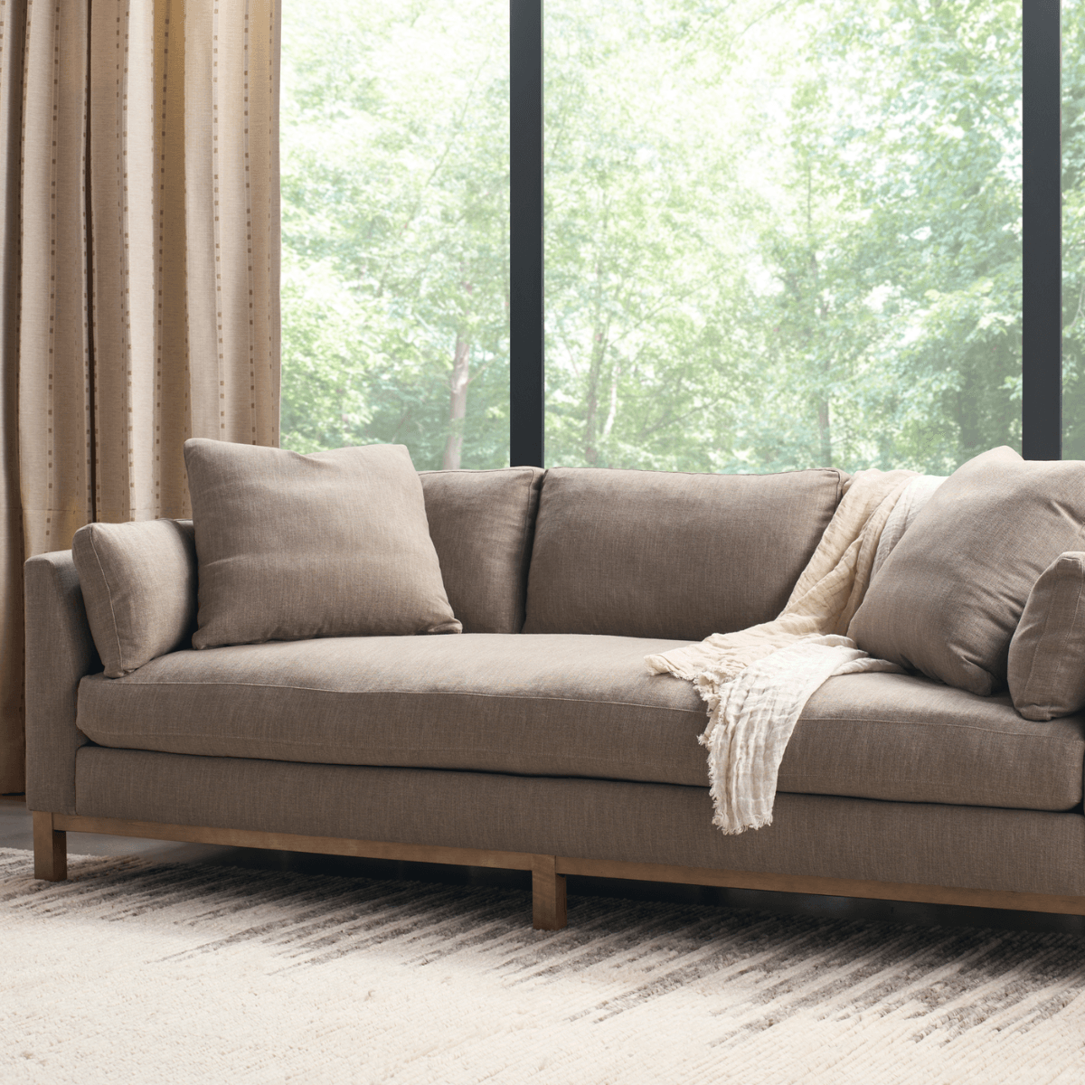 Sylvie's modern lines and deep seat make it an inviting sofa for relaxing at the end of the day. Choose one of Rowe's durable, kid proof fabrics to make it truly family friendly.