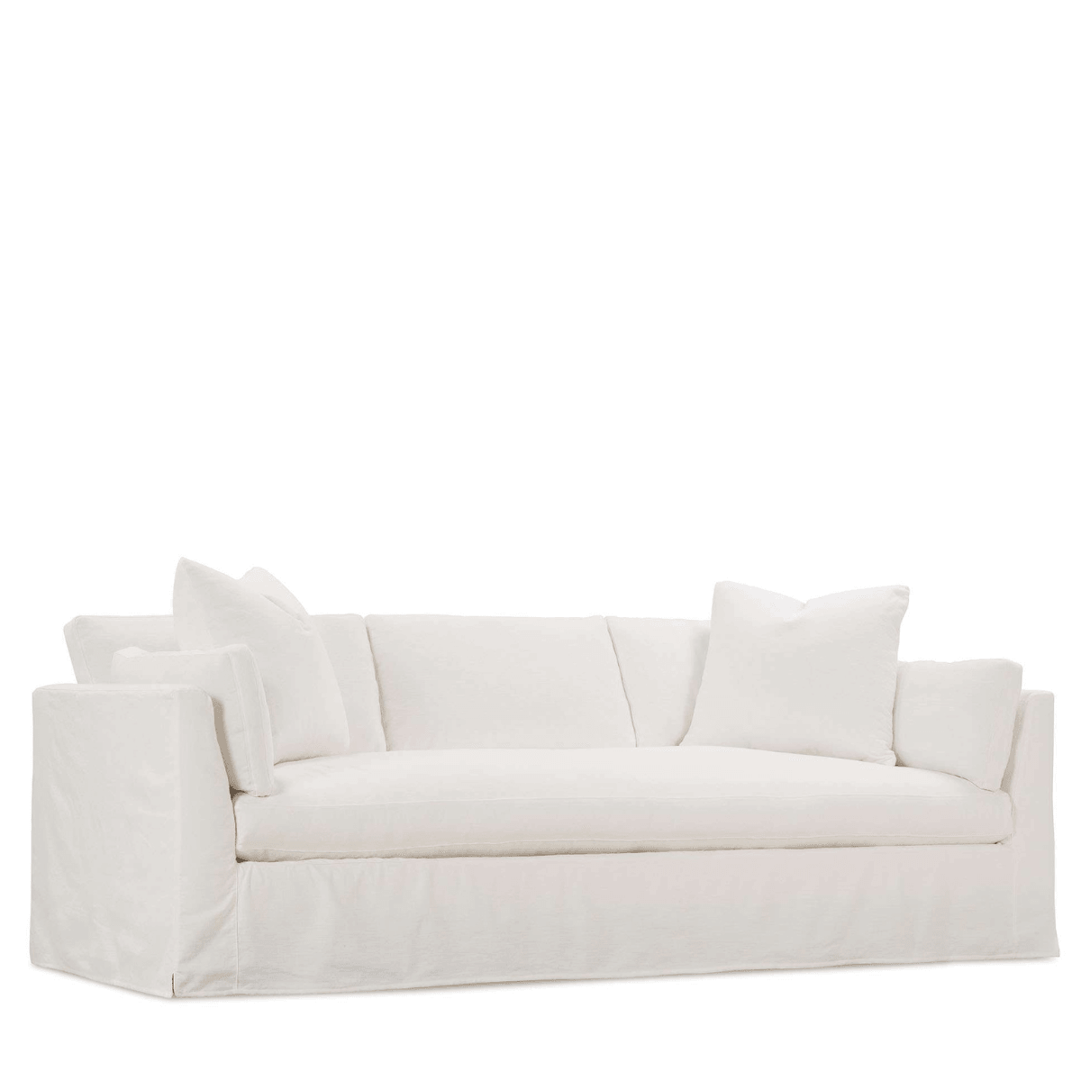 The Boden Bench Seat Sofa is an intriguing mix of modern, mid-century, and traditional that can be customized with your choice of fabric.