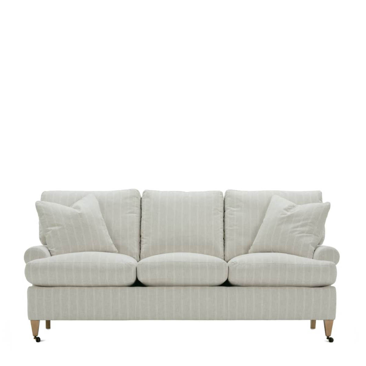 The Cadence Sofa is made with a Cloud down cushion. This cushion is one of Rowe's most luxurious and comfortable cushion options. The Cloud down cushion requires daily maintenance - fluffing, flipping, and smoothing of the seat and back cushions to keep its appearance looking fresh. Comfort wrinkles are to be expected and are a feature of the sofa's style – a traditional sofa frame with modern, relaxed seating.