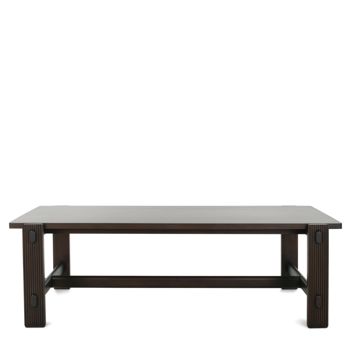 The Kindred Rectangle Dining Table masterfully merges architectural elegance with timeless appeal through its distinctive reeded detailing and refined proportions. Available in both rich Godiva and lighter Sesame finishes on premium solid mahogany, this sophisticated piece features artfully fluted legs that create a mesmerizing play of light and shadow, while the clean-lined silhouette ensures versatility across design styles. The table's carefully considered construction showcases exquisite craftsmanship in every detail, from the gracefully curved accents to the structured bottom trim that grounds the piece with classical authority. Topped with a solid mahogany surface for organic appeal, this dining table possesses the rare ability to command attention while harmoniously anchoring both traditional and modern dining rooms with equal sophistication.