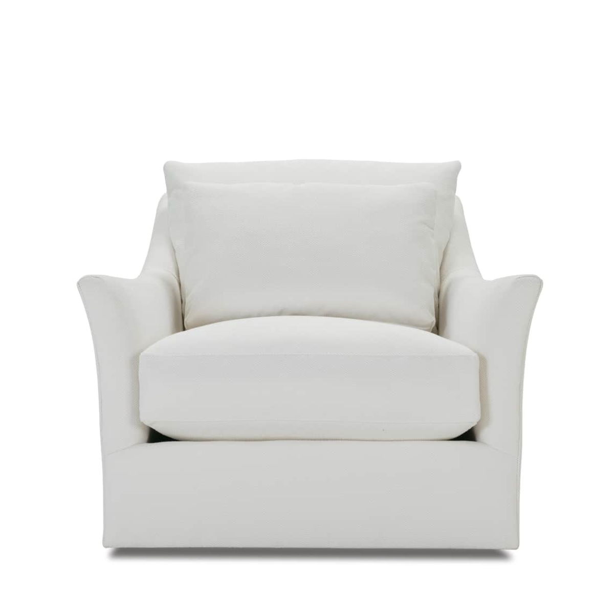The Moreau Swivel Chair is made with a Cloud down cushion. This cushion is one of Rowe's most luxurious and comfortable cushion options. The Cloud down cushion requires daily maintenance - fluffing, flipping, and smoothing of the seat and back cushions to keep its appearance looking fresh. Comfort wrinkles are to be expected and are a feature of the chairs style – a traditional chair frame with modern, relaxed seating.
