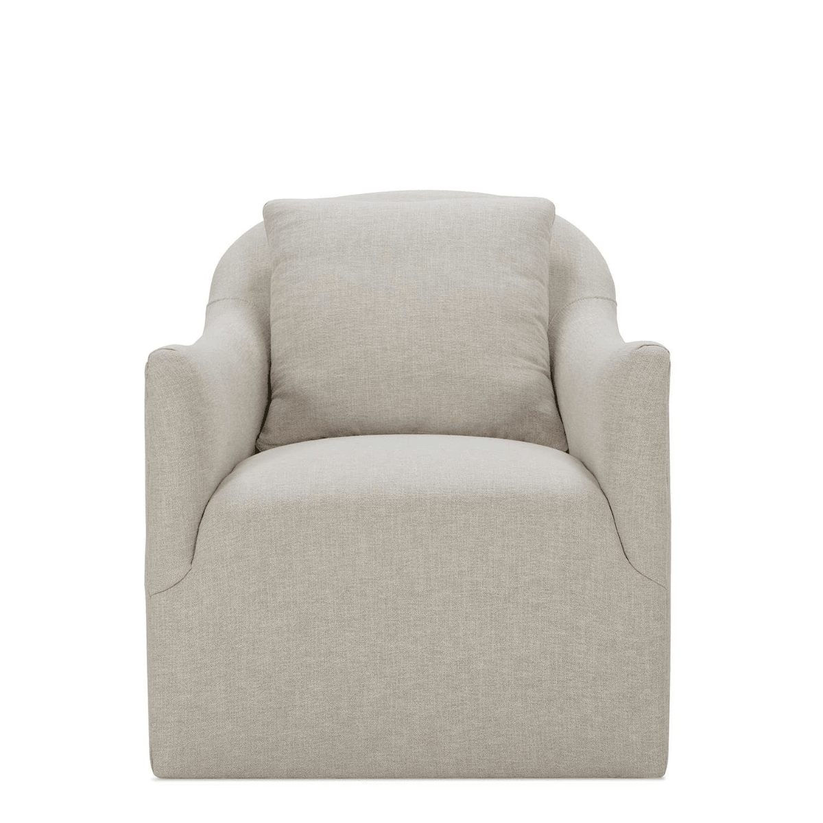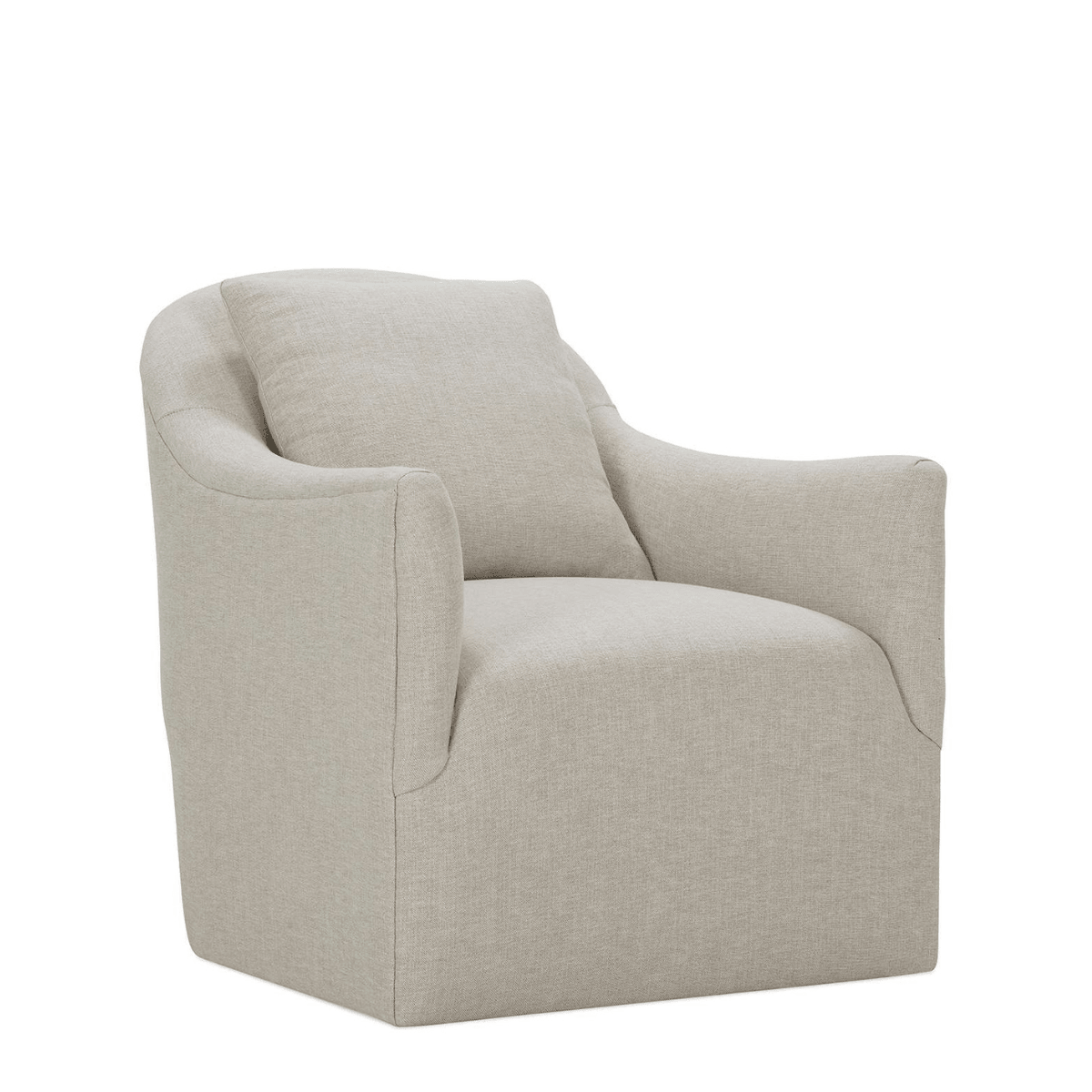 You might have found yourself drawn to the Noel swivel chair, and that’s because it has all the right angles. A slight curve in the back provides the ultimate support, and a curve in the arm adds a unique design element. The back and seat cushion feature a loose, comfortable fill; you won’t want to get up once you experience the comfort. Our design experts always use this chair in nurseries because of its comfort and craftsmanship. It's also a lovely addition to that nook that's been missing a chair.