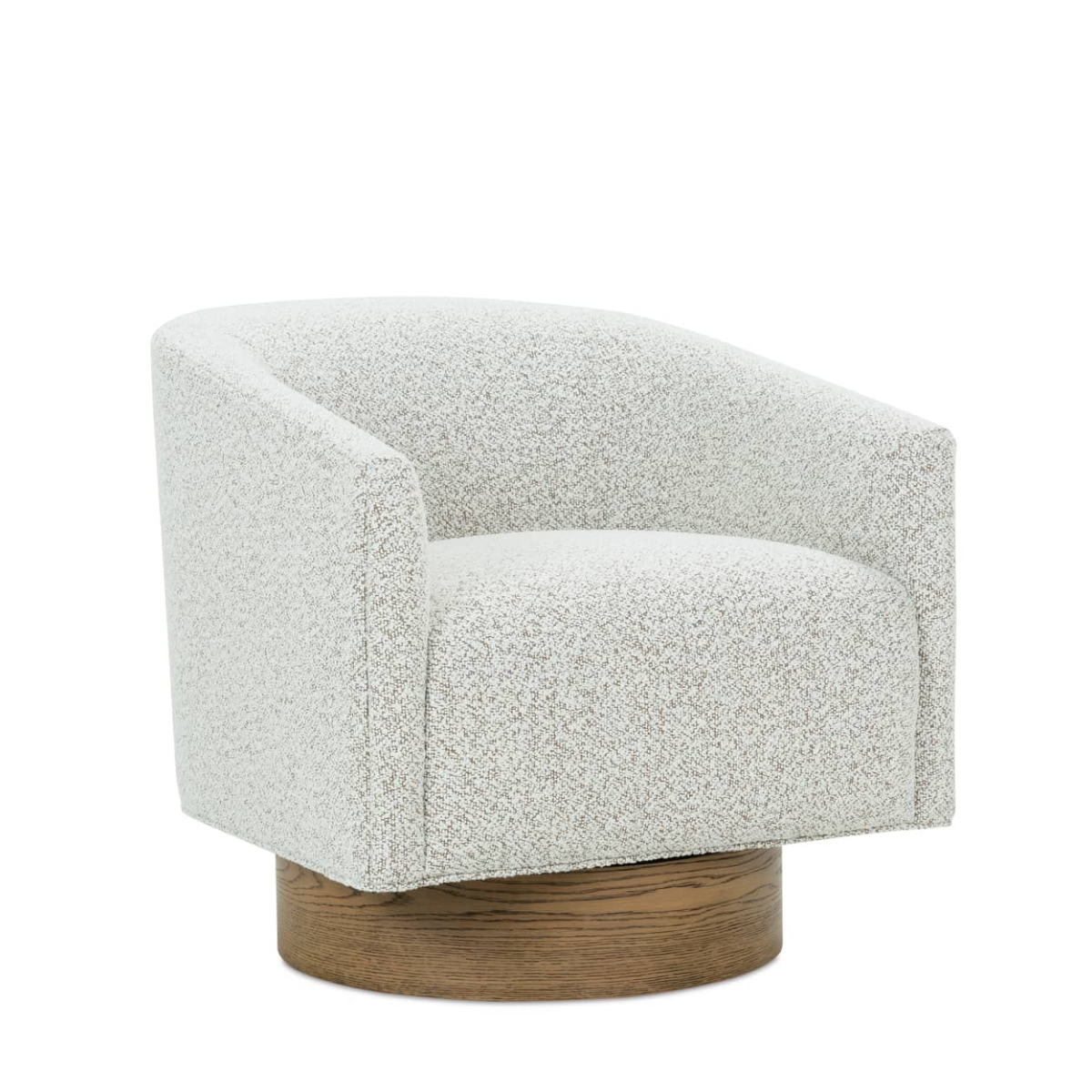 Get ready to swivel in style! The Petra Swivel Chair's curved back and plinth base offer both style and comfort. Plus, you can customize it with any of Rowe's fabrics for a truly unique piece. Base is white oak in french press finish.
