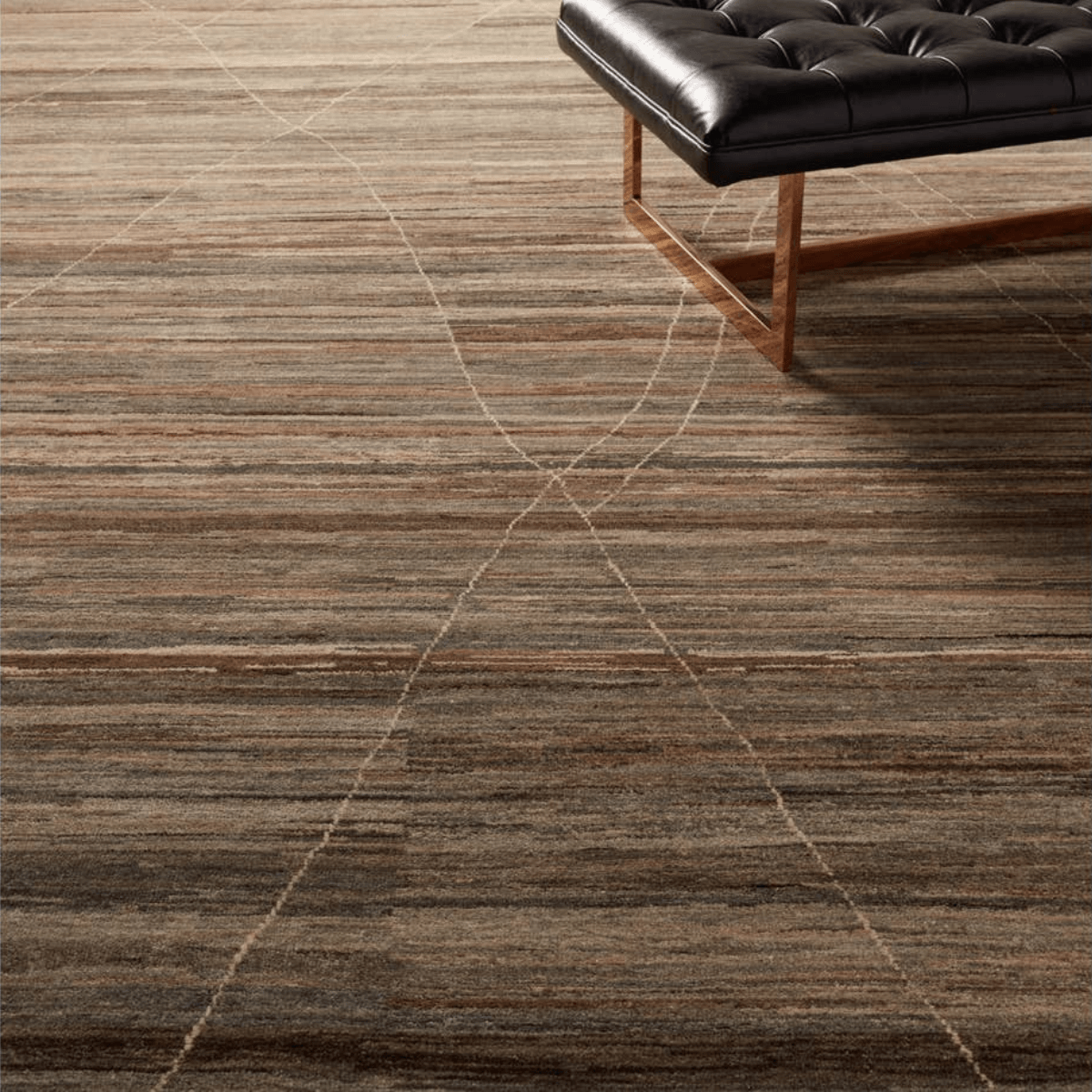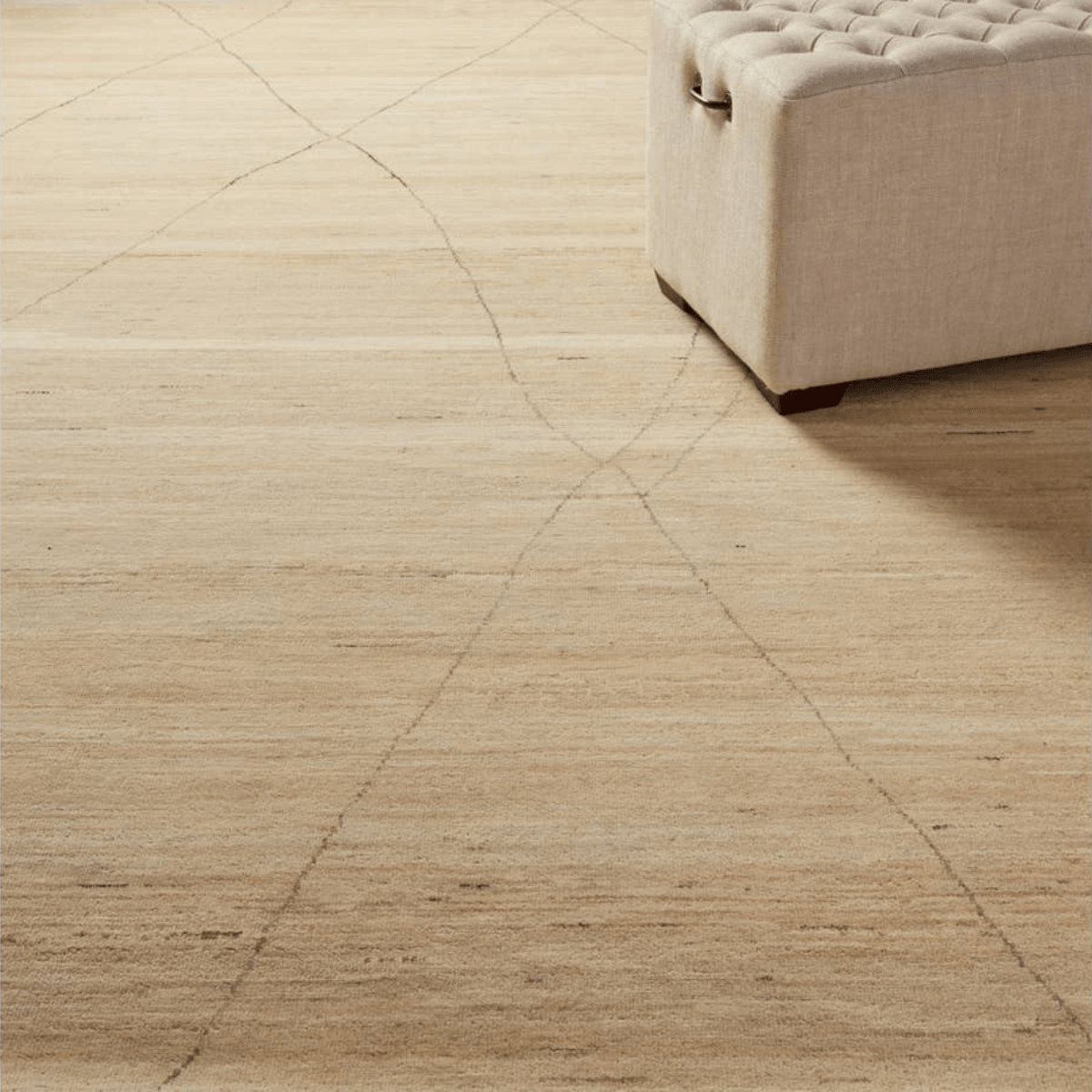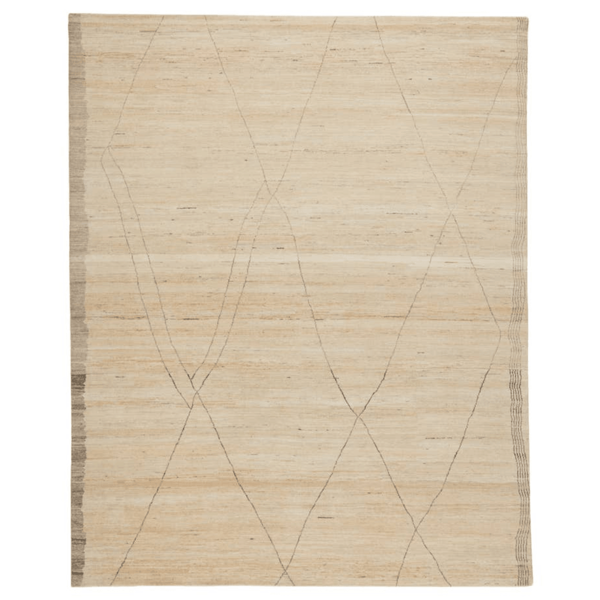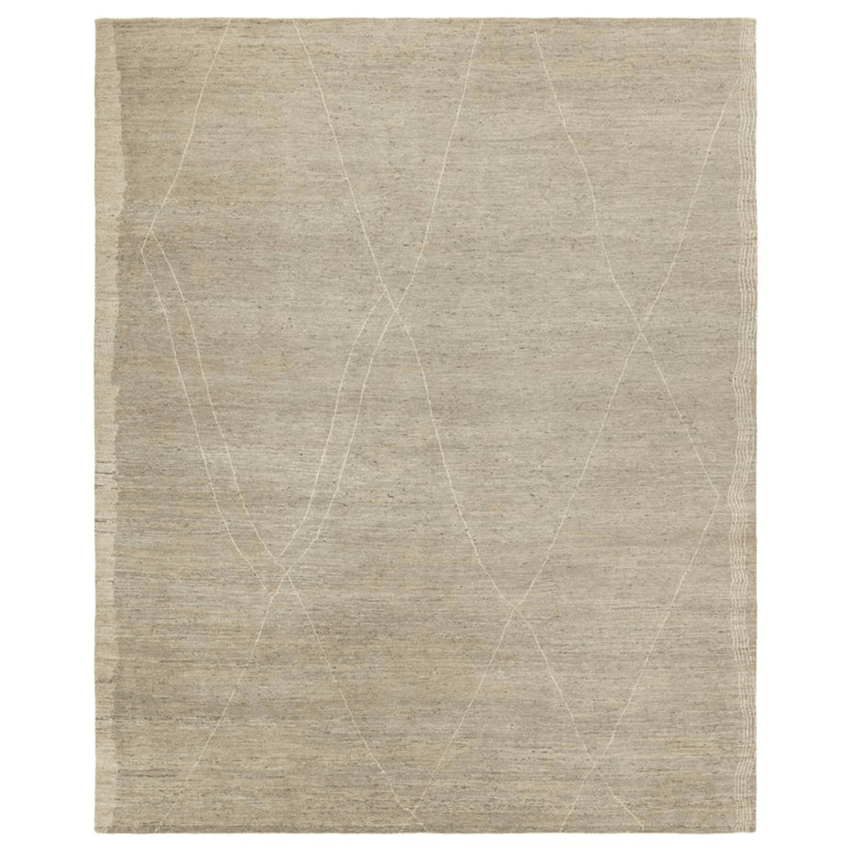 The Manifest collection features designs inspired by North African motifs and an exceptional hand-knotted quality of an exclusive blend of wool. Neutral and easy-to-decorate, the Curium rug boasts a broken lattice pattern, grounding global spaces with tones of beige, gray, and cream.