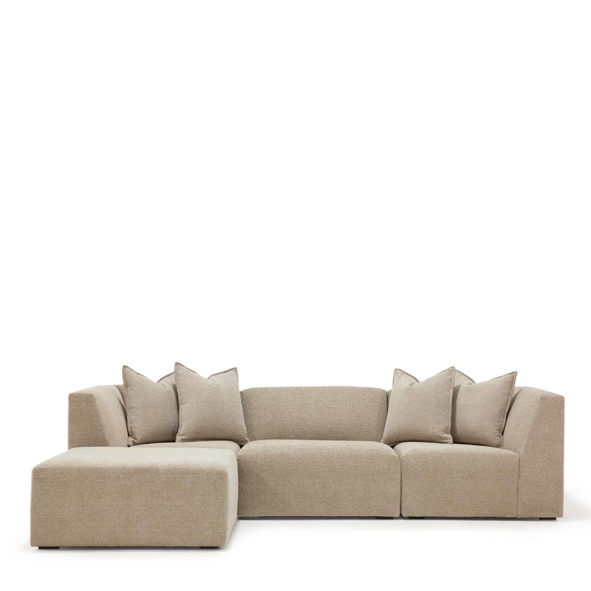 With its clean, geometric lines and versatile arrangement, the Happy Modular Sectional seamlessly integrates with any aesthetic, standing out as a prominent piece within the Happinest Collection.