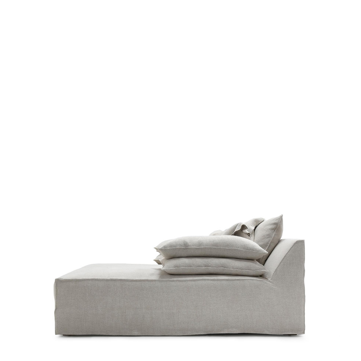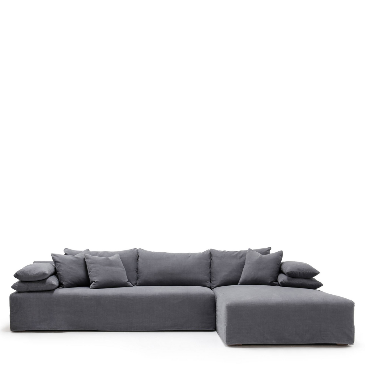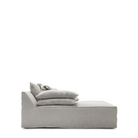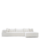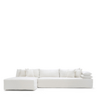 The Maxim Chaise Sectional features a low-profile design with a tight back, deep semi-attached seat configuration, and semi-attached arm pillows, available in a slipcovered option only.