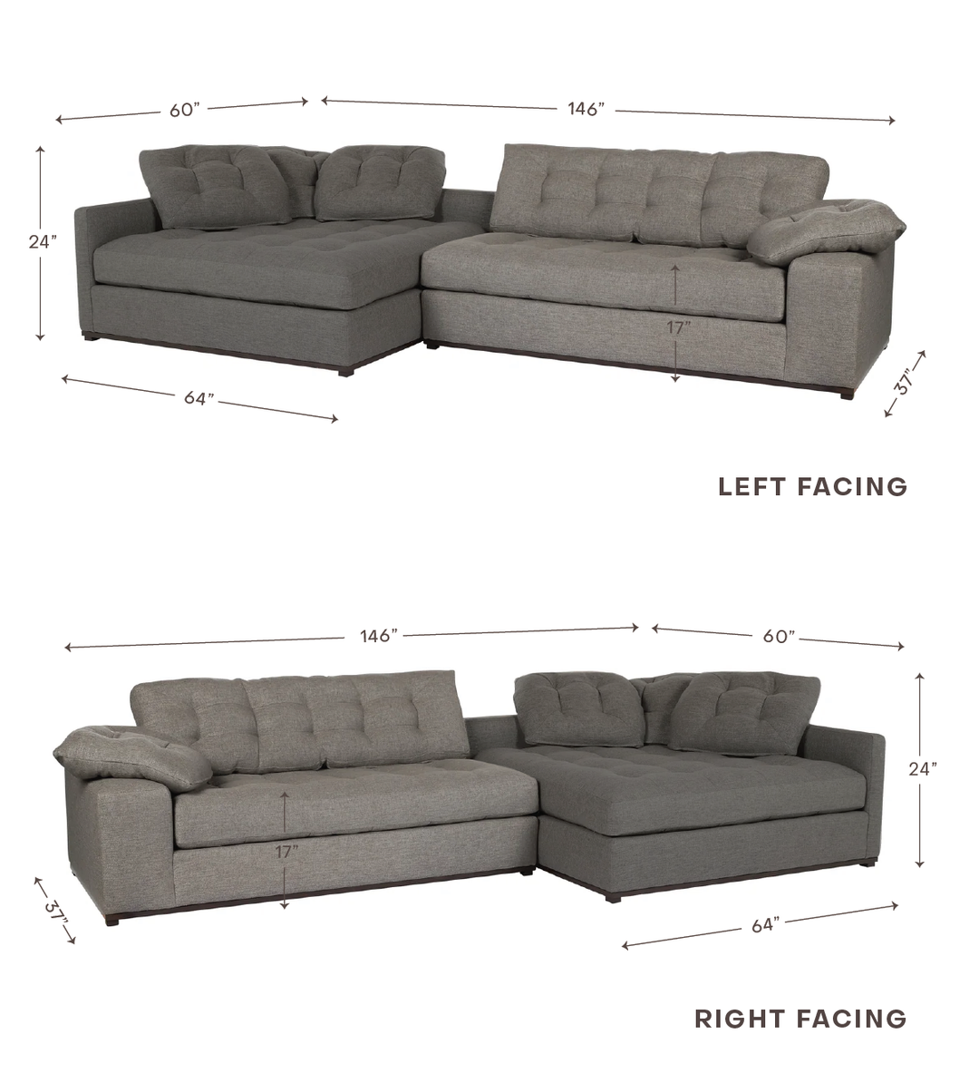 • One Arm Chaise: 64" W x 60" D x 24" H
