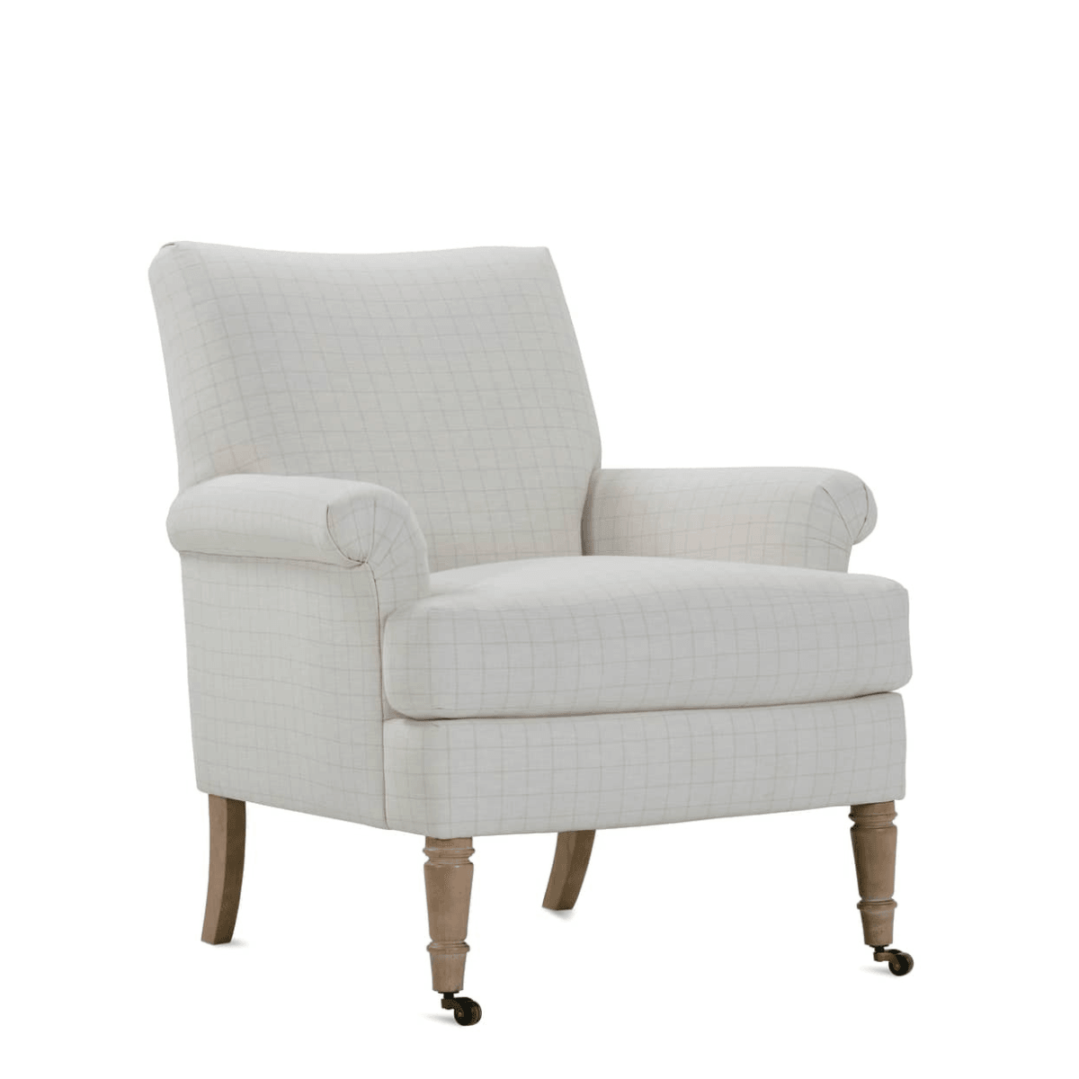 Add a little charm to any space with Rowe's Hannah chair. It's turned wood legs and classic pleated roll arm are paired with contemporary lines so it can manage to look good in just about any room!