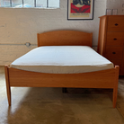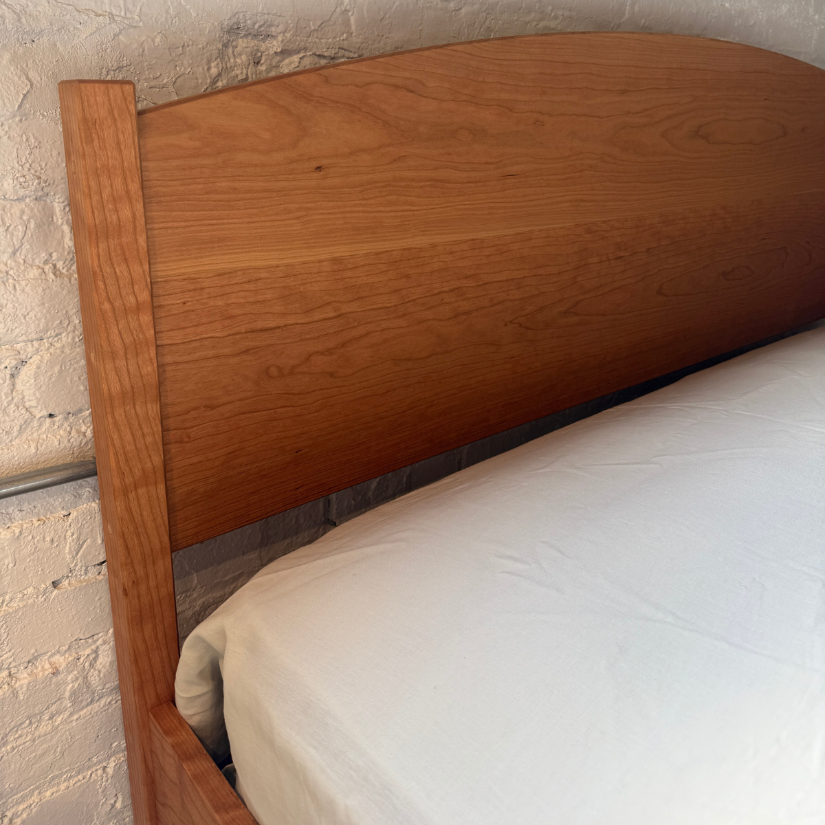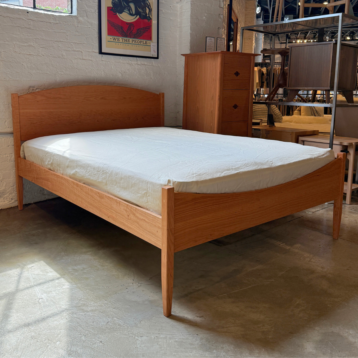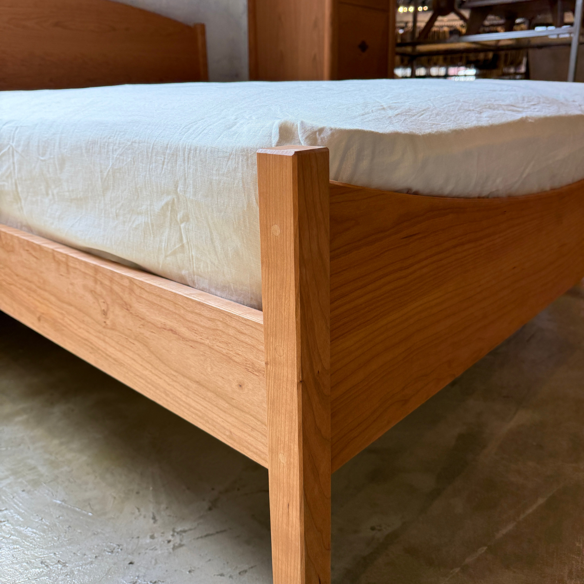 The Shaker Moon bed is a classic of tradition and form with delicate lines combined with rock-solid construction. Seven wide hardwood slats have holes drilled near both ends that slip over evenly spaced dowels on a ledger strip inside each side rail make for an unmovable platform. Heavy castor bed hangers are morticed into the side rails and bed ends. As bed parts drop into one another (no tools required) the entire bed locks ever tighter together.