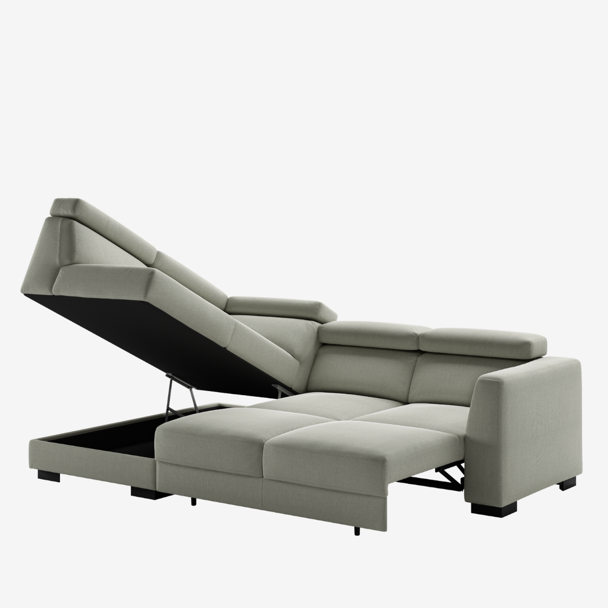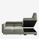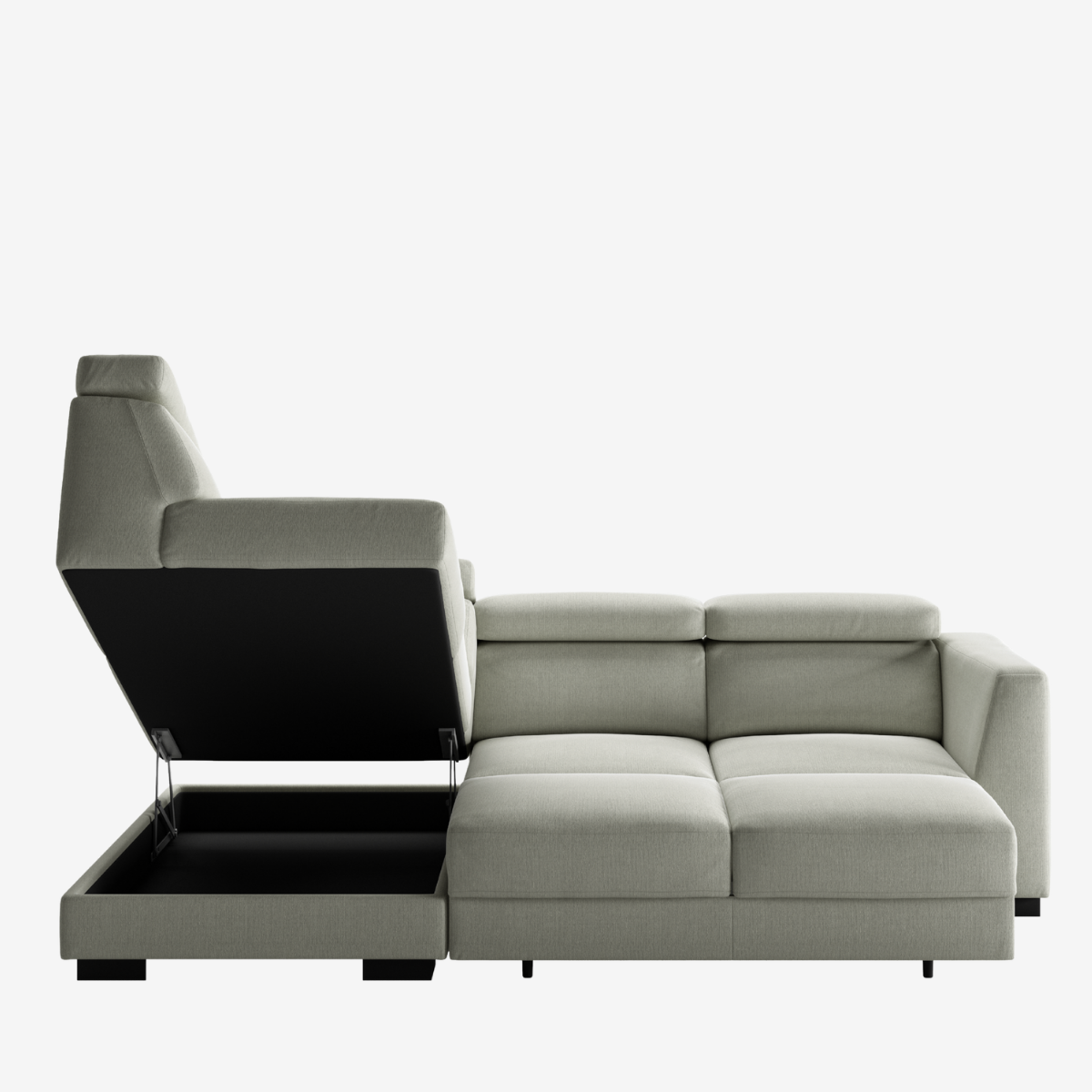 This multi-functional sectional sofa offers adjustable seat depth and neck rests, features the Move sleeper function, and a large storage box under the chaise. Plus optional features are available. Halti has so much to offer.