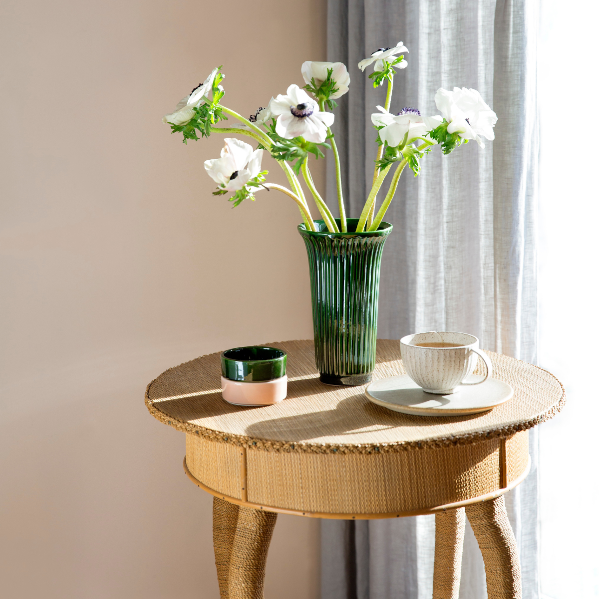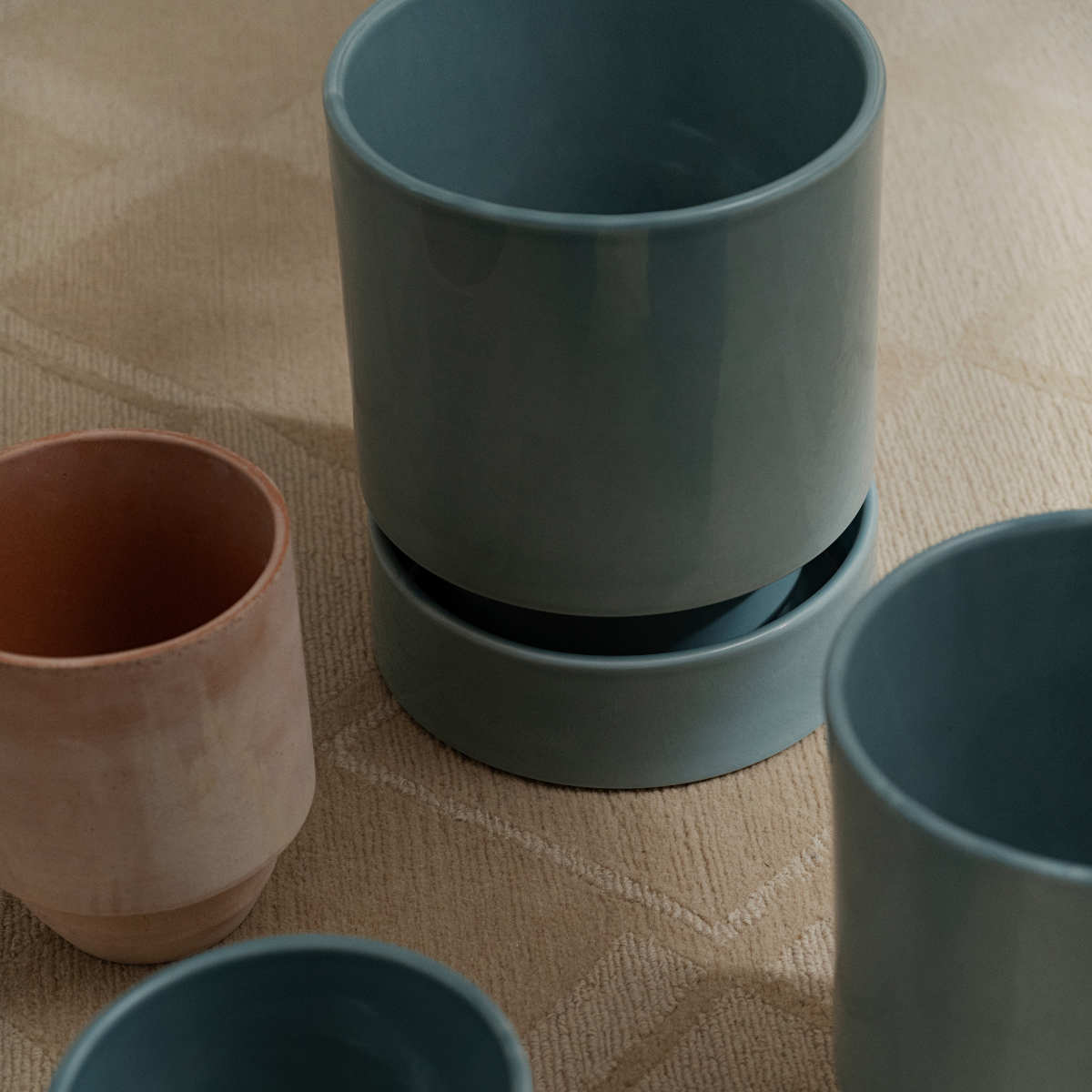 The design’s stringency is fulfilled when the natural clay pots are matched with the hand-dipped cylindrical saucers in luscious signature glazes. The Hoff series consists of flowerpots, saucers and versatile candleholders – all made to be mixed, matched, stacked, and piled into irresistible combinations.