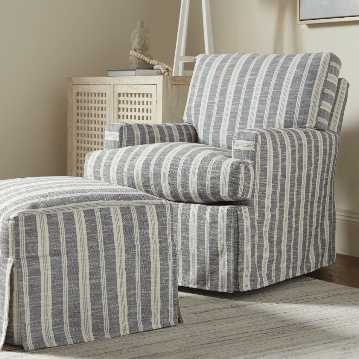 The Sadie features a swivel glider base and ample padding for long-lasting comfort whenever you need a break. Available in two sizes so you can choose to suit your needs.