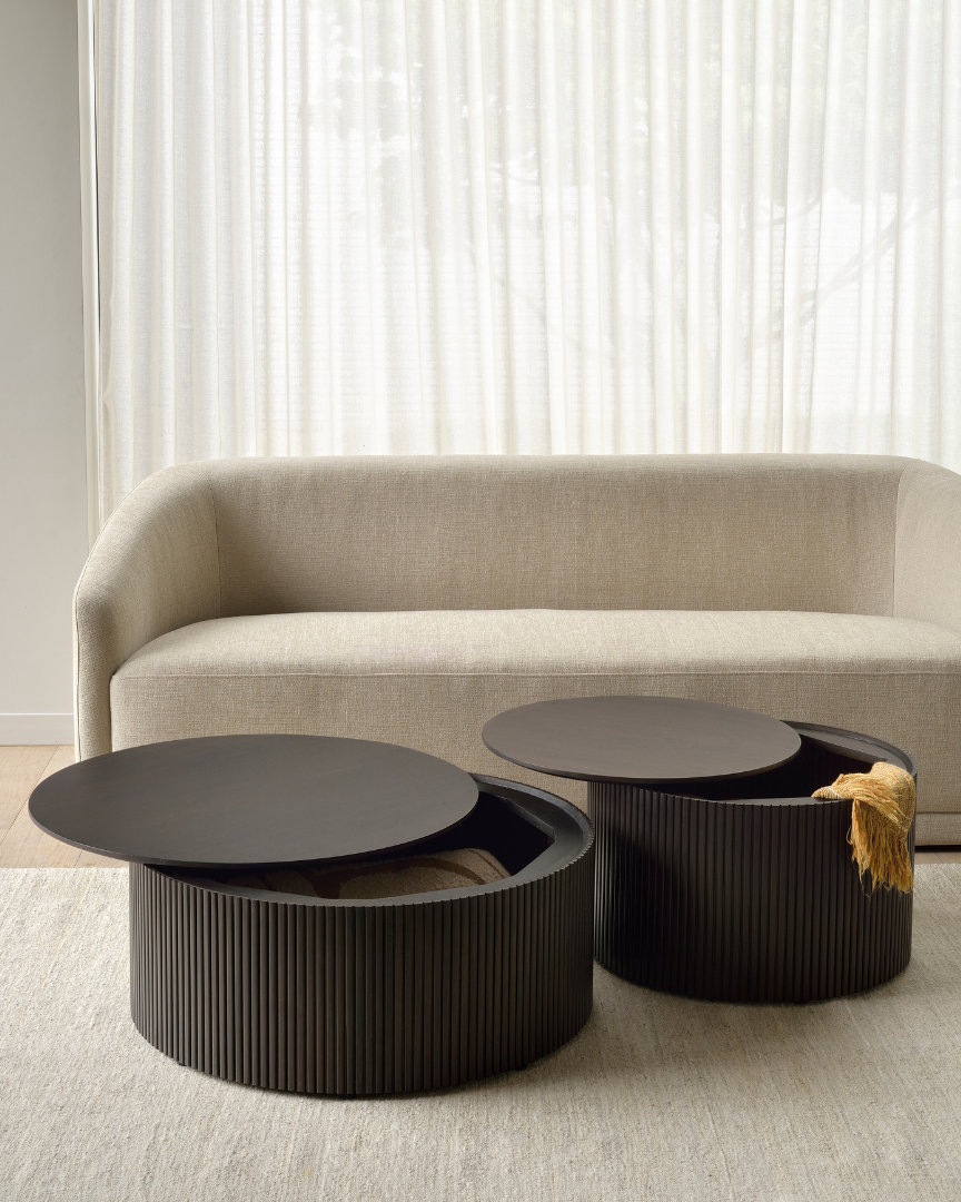 Let your interior design shine without the extra clutter by choosing coffee tables and entertainment consoles that offer additional storage shelves or drawers. From exquisite bookshelves to cabinets and end tables, discover pieces built with intention to streamline the enjoyment of your gathering spaces.