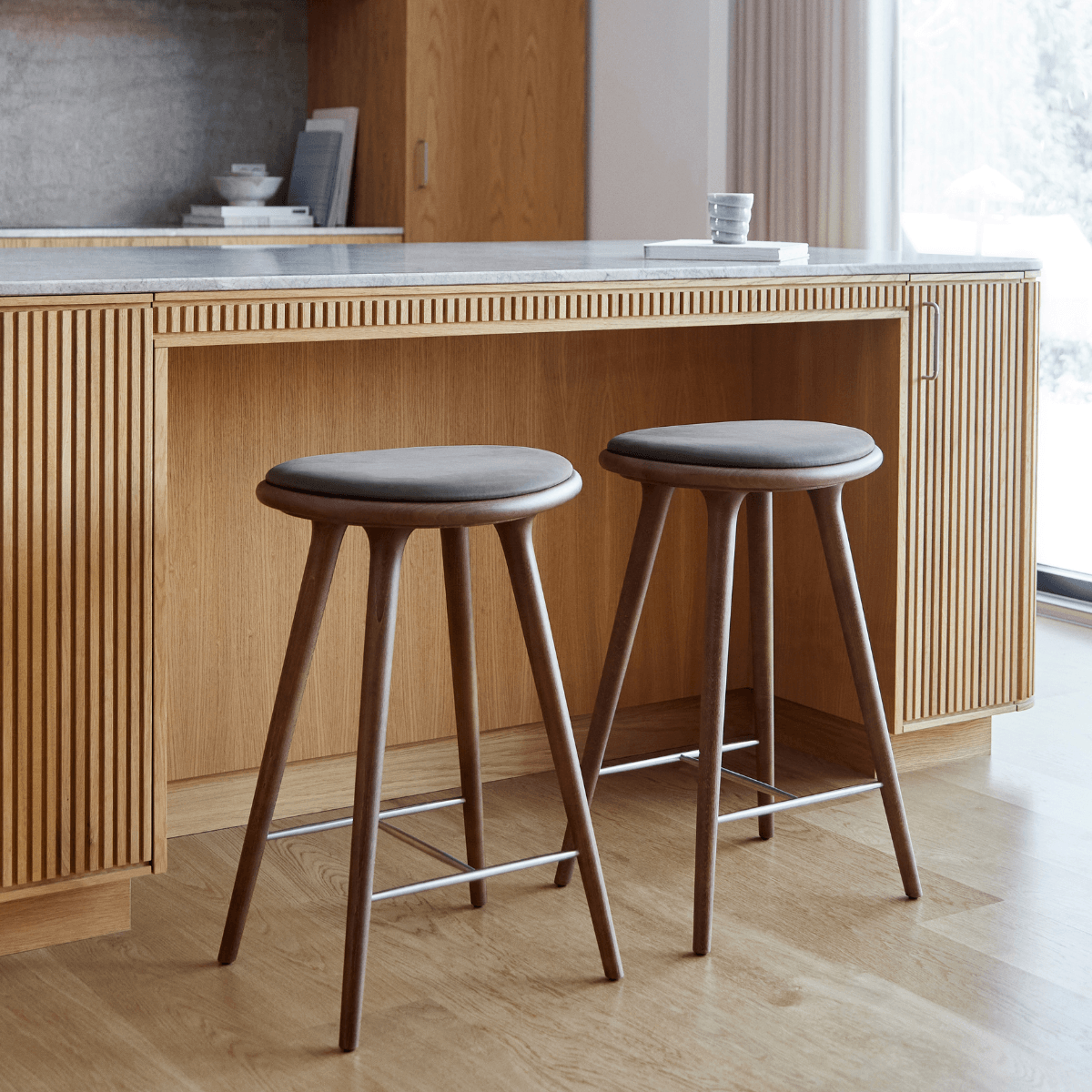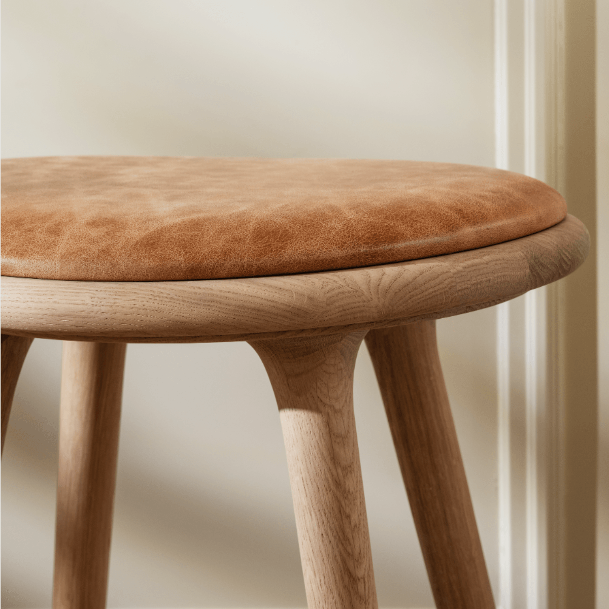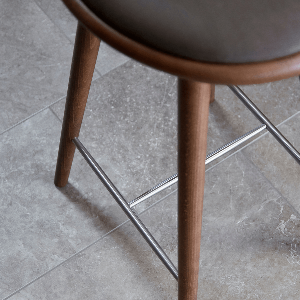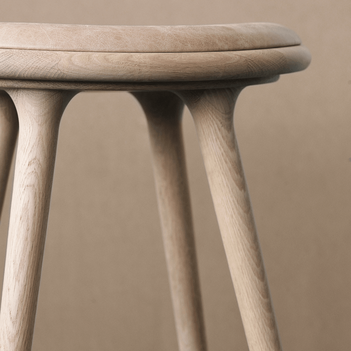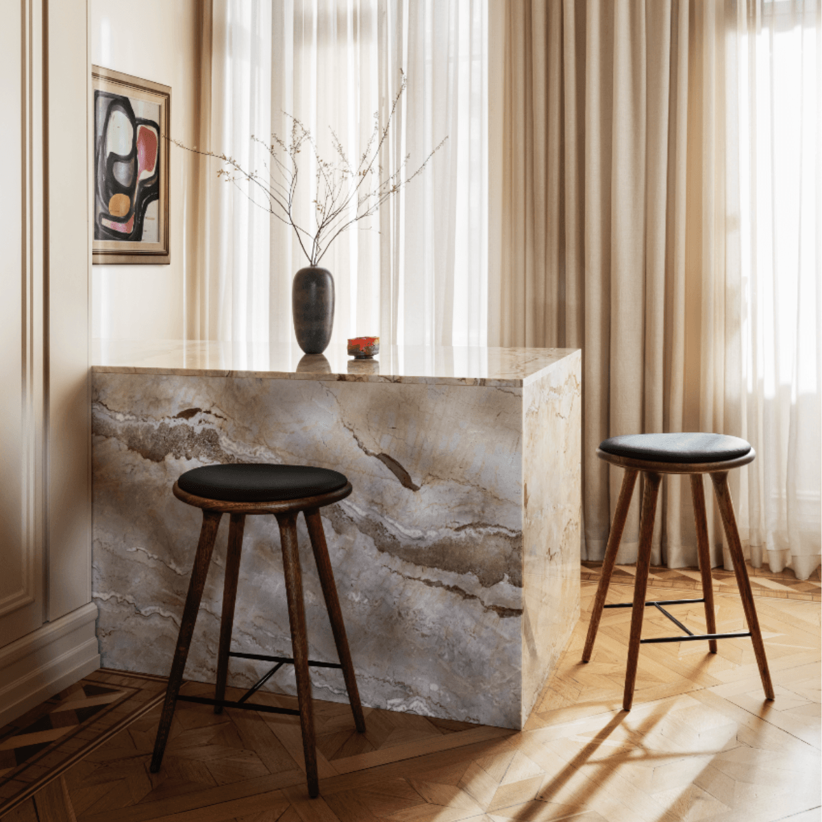 Space Copenhagen designed the High Stool with a new backrest — hence the name High Stool Backrest — which builds on High Stool’s beautifully fluid, sculptural and archetypal character, adding a generously rounded backrest for a heightened sense of comfort. The backrest itself is upholstered in soft durable leather and is fully supportive and comfortable so that it outweighs the need for armrests.