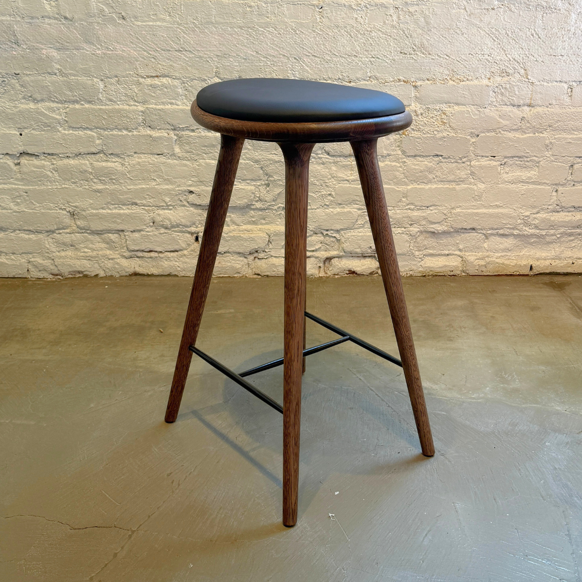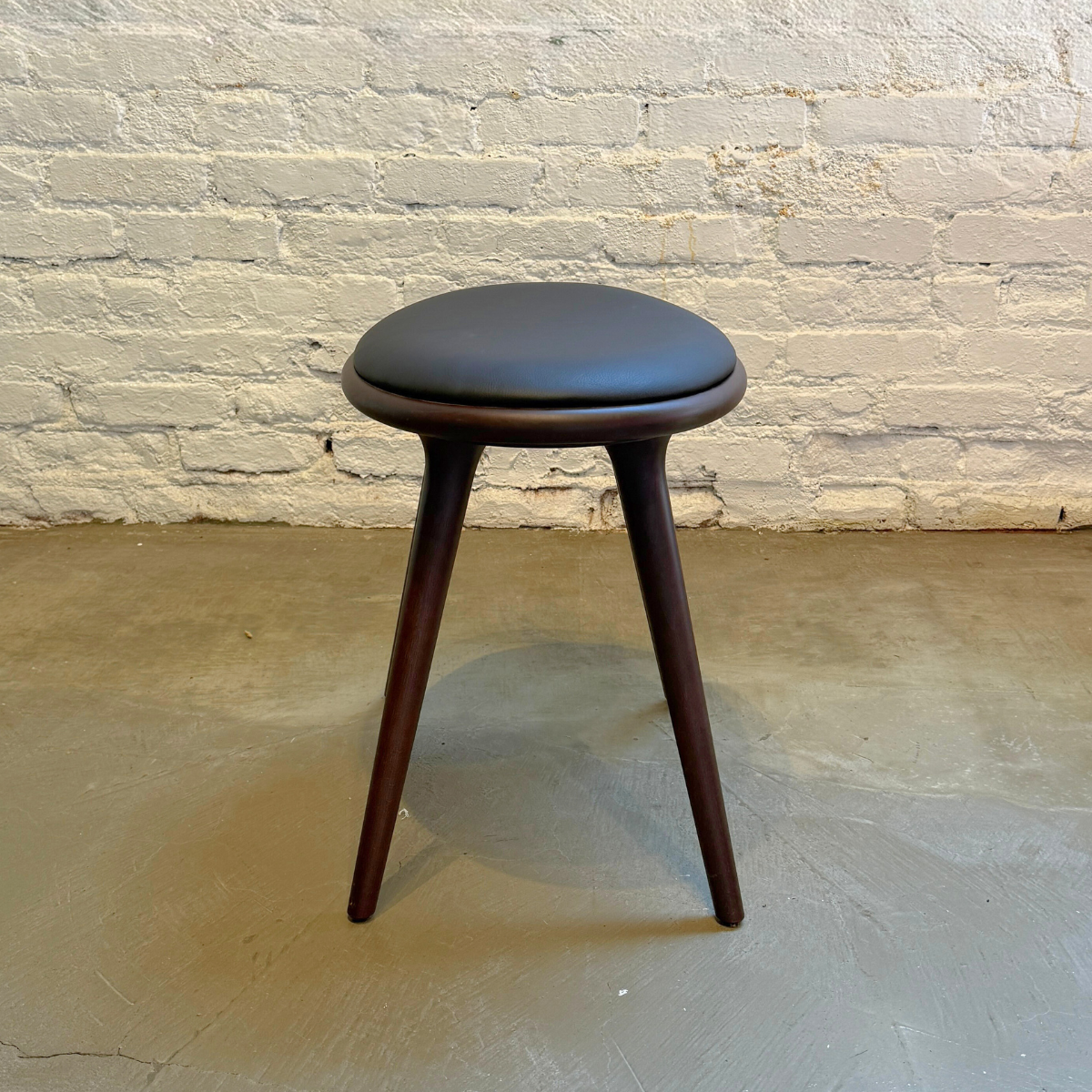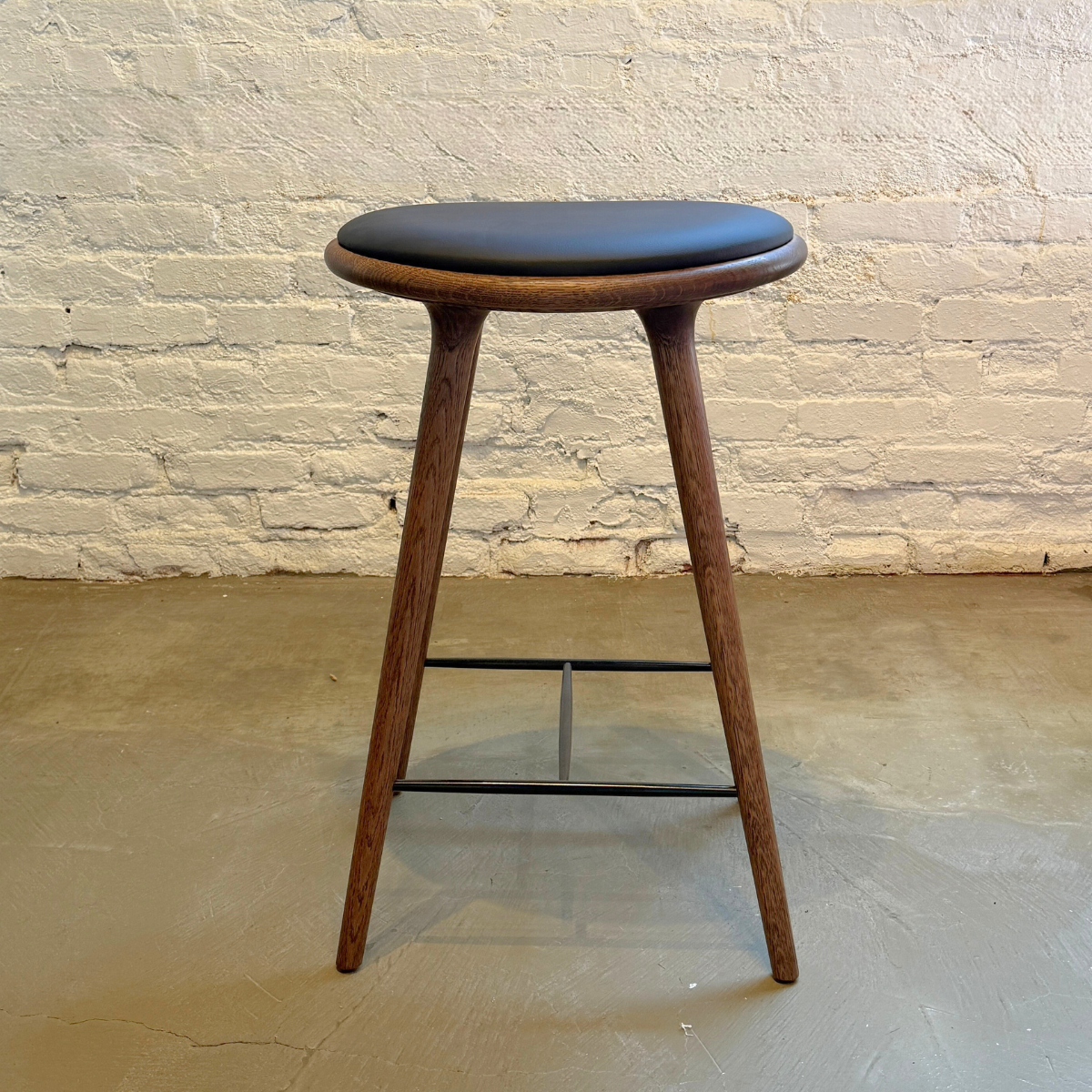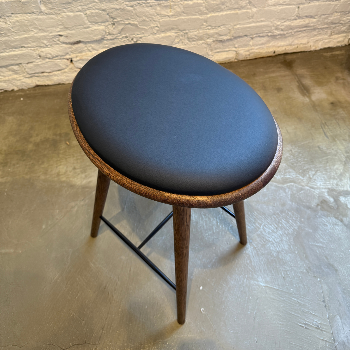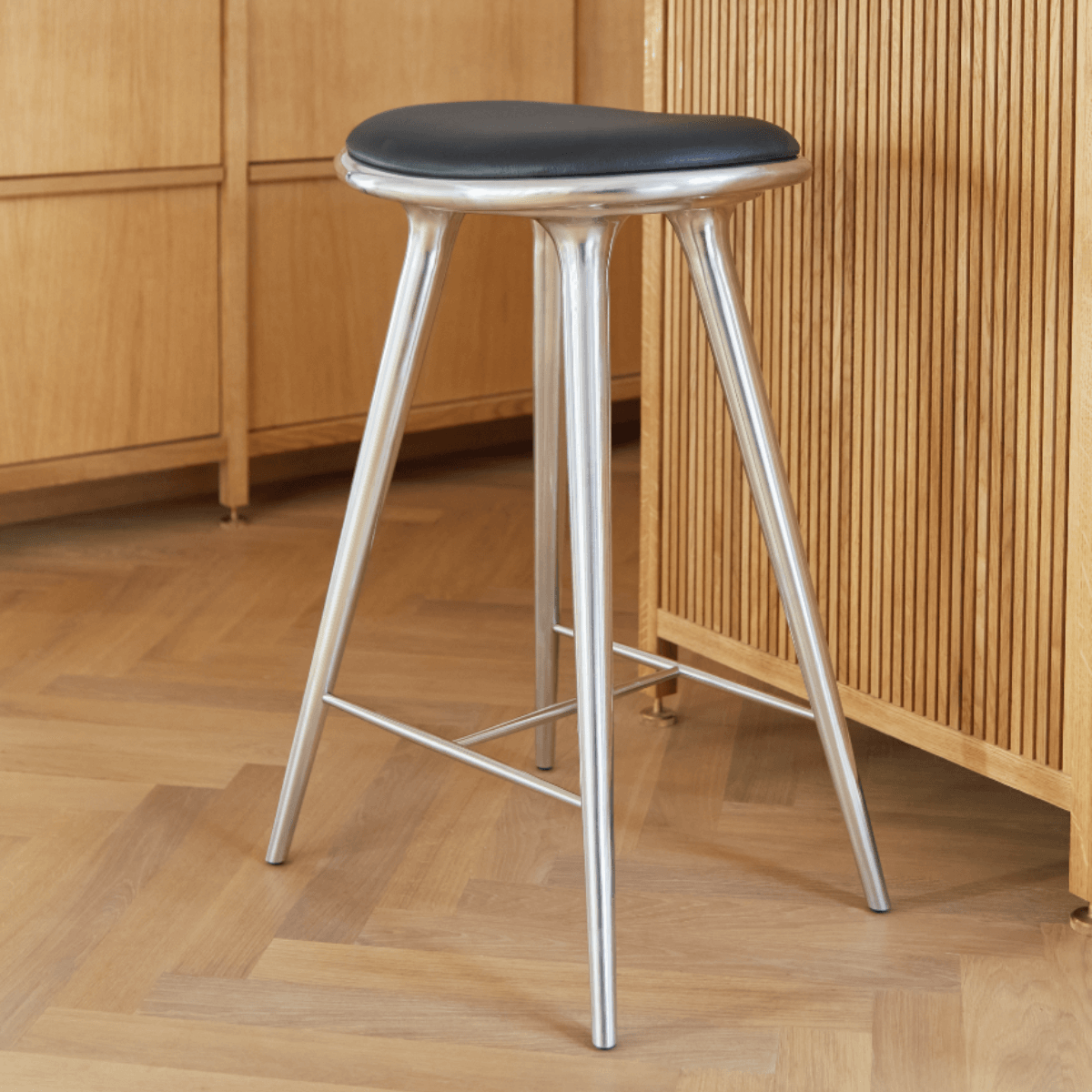 Space Copenhagen designed the High Stool with a new backrest — hence the name High Stool Backrest — which builds on High Stool’s beautifully fluid, sculptural and archetypal character, adding a generously rounded backrest for a heightened sense of comfort. The backrest itself is upholstered in soft durable leather and is fully supportive and comfortable so that it outweighs the need for armrests.