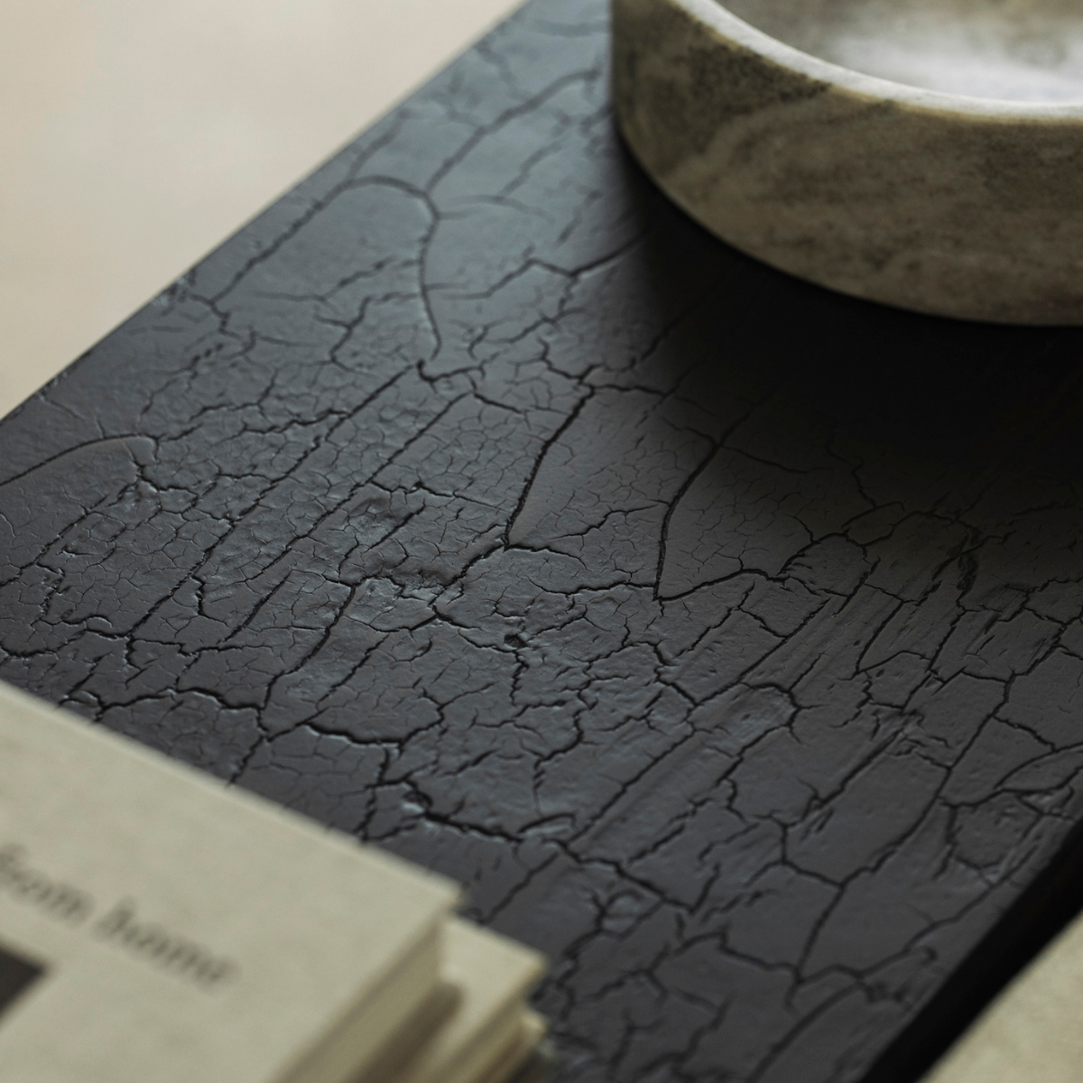 - The distinctive table top finish is made from mineral powders, water, earth, natural color pigments and metallic powders.