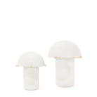 The Fun Guy collection is made from crushed stone composite. The round shapes are both positive and negative in form making light dispersion artful and unique.