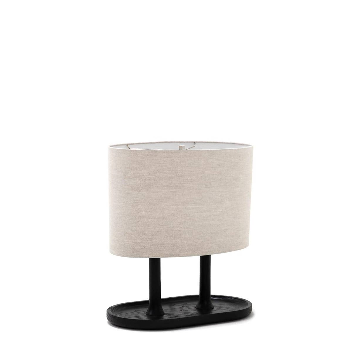 The Lago Table Lamp features a sleek twin-column design on an oval black base, blending architectural elegance with minimalist style.
