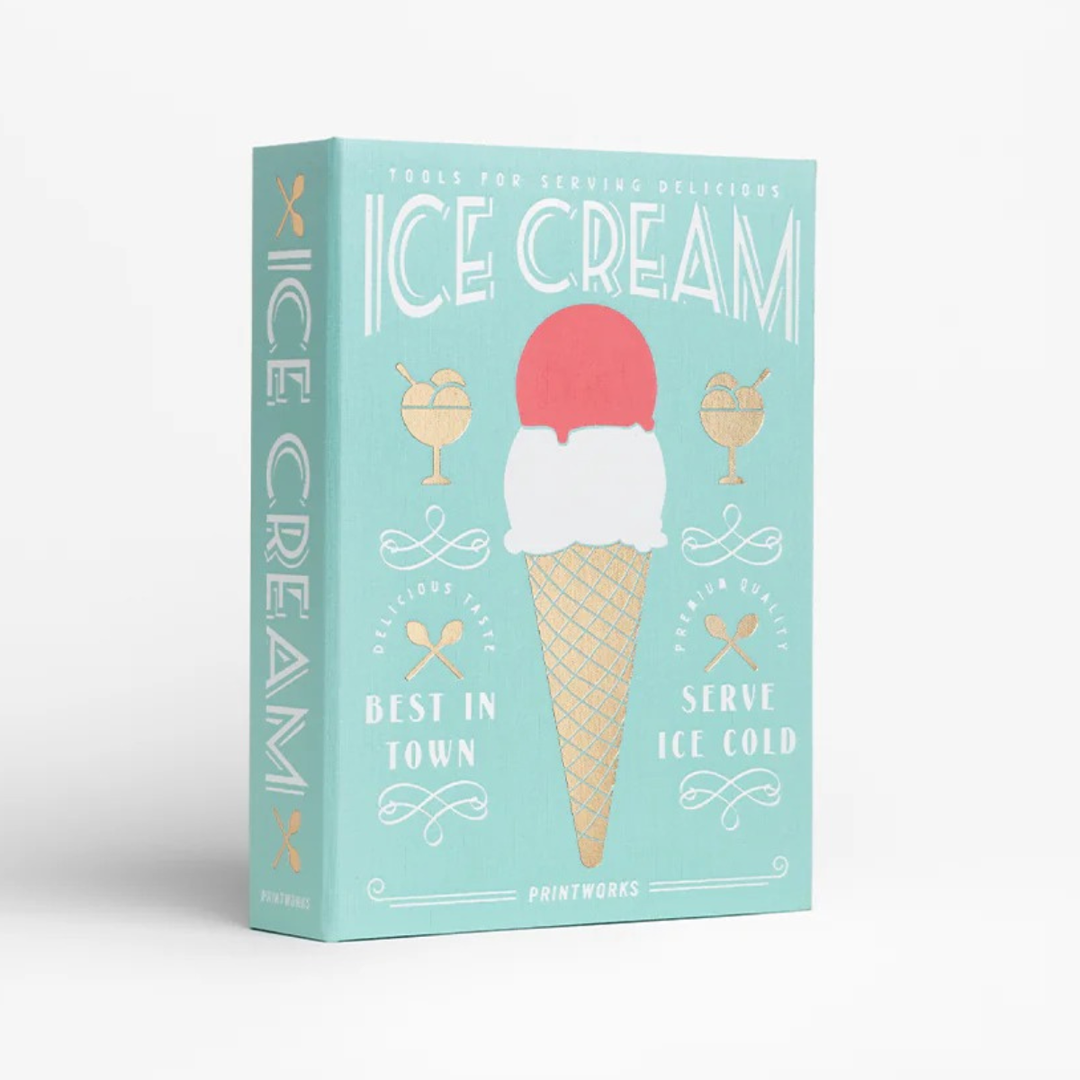 Discover the Essential Ice Cream Kit, cleverly disguised as an elegant book-like box. Upon opening it, you will discover all the essential tools for a successful ice cream party. Say goodbye to kitchen clutter, as these boxes not only organize your space but also enhance it with style and purpose. All tools are made of stainless steel and are dishwasher safe.