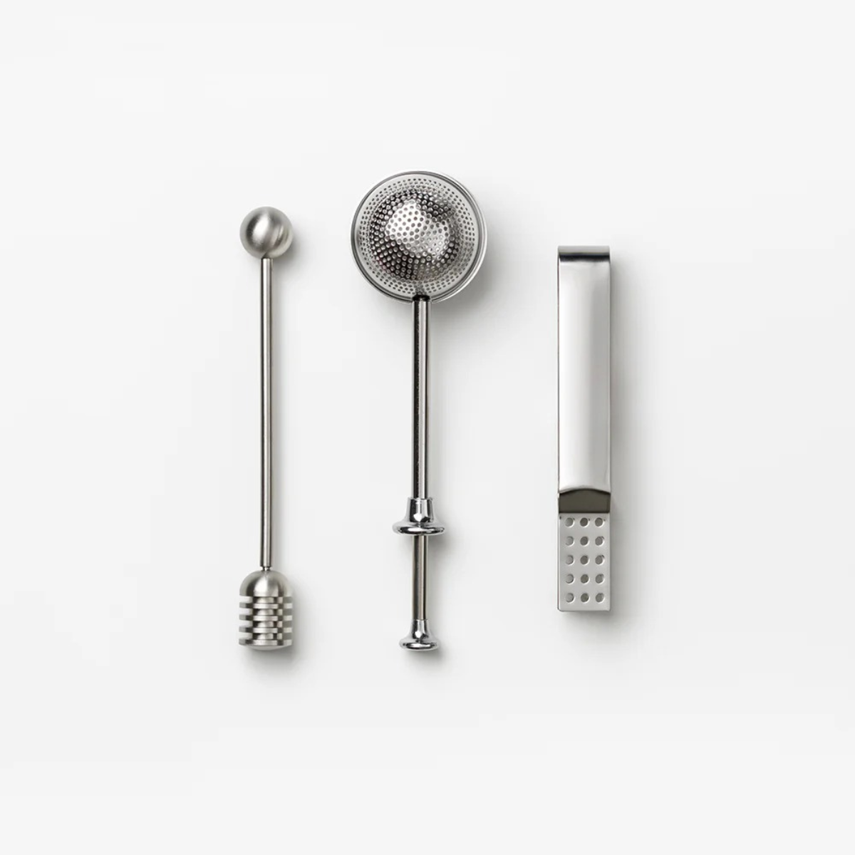 Discover the essential kit for all tea lovers - a refined toolbox in an elegant book-like box that makes the perfect gift. Inside, you'll find all the essentials to elevate your tea ritual. All products are made of stainless steel and are dishwasher safe.