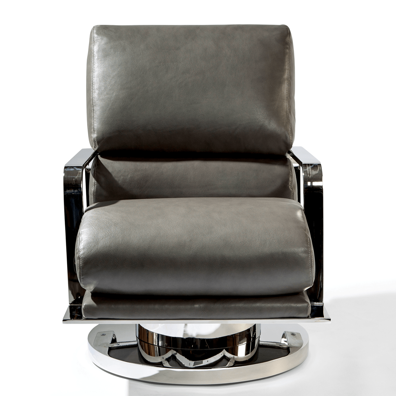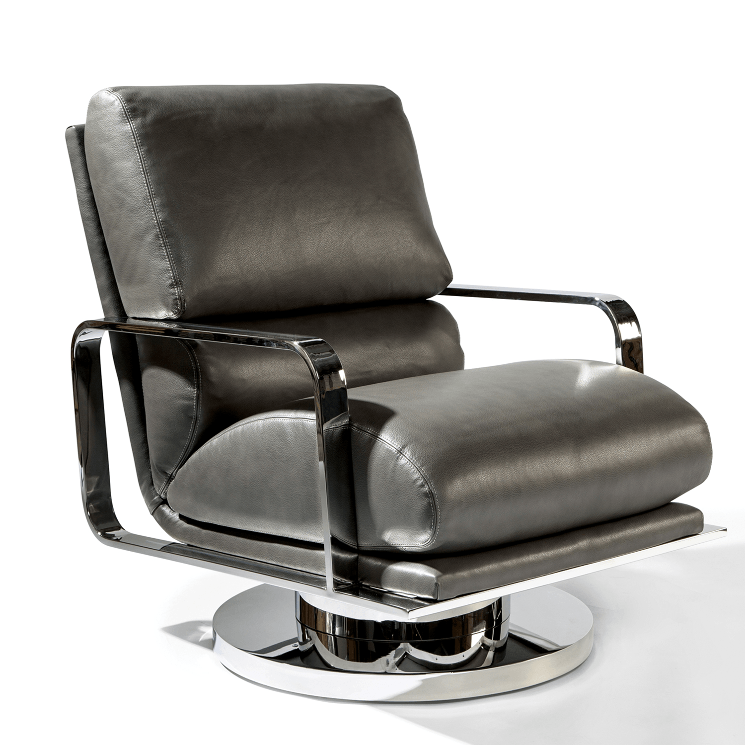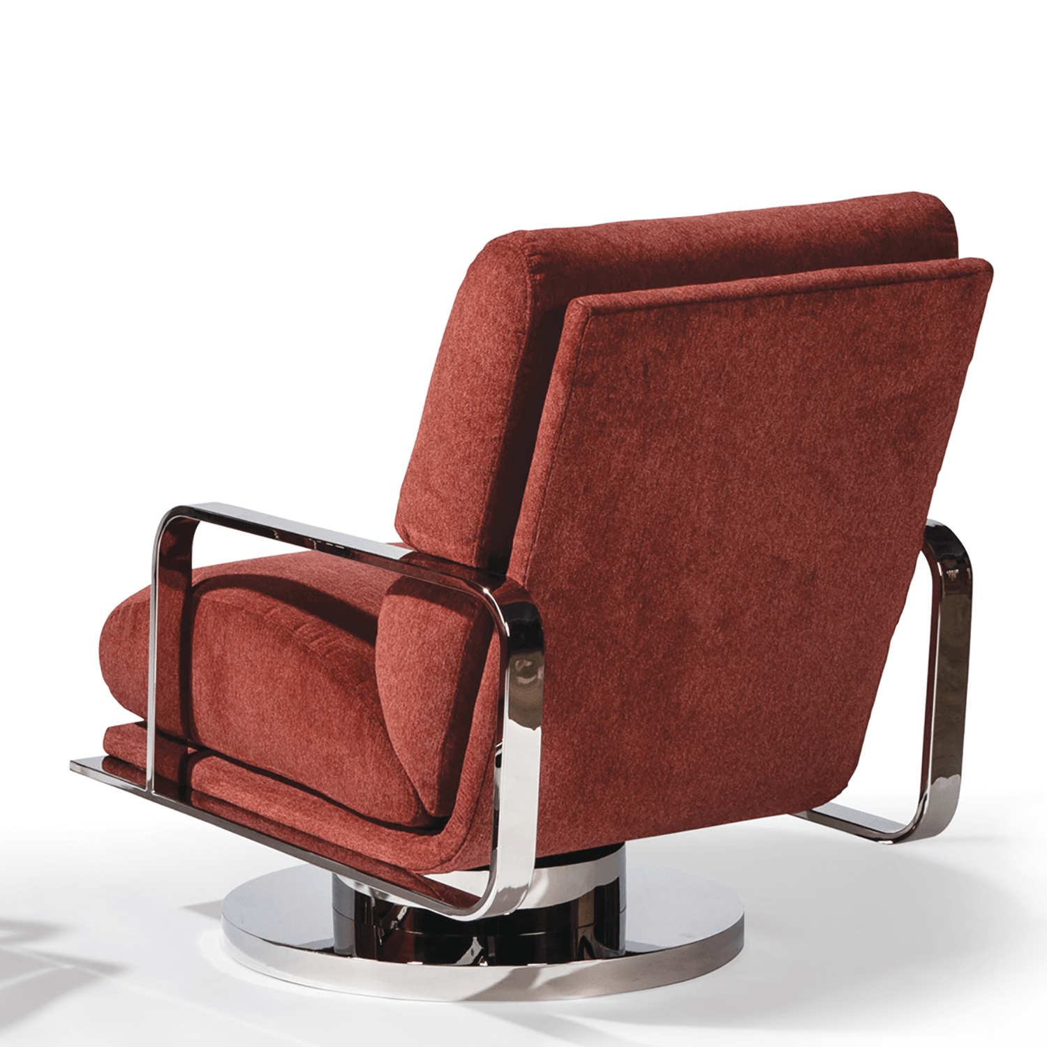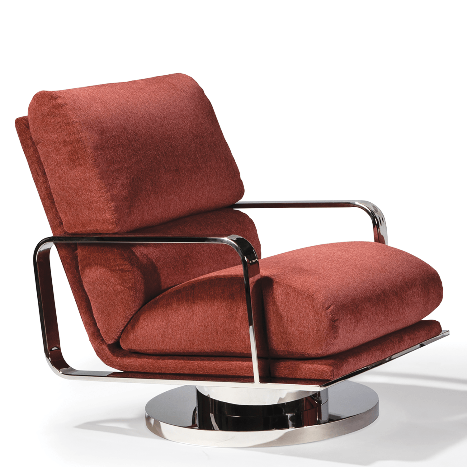A Milo Baughman design initially conceived in 1980, the Mercury swivel-rocking lounge chair is a dream to drive. With its unique swivel rocking mechanism, curvaceous styling, and comfort seating Mercury delivers a smooth ride.