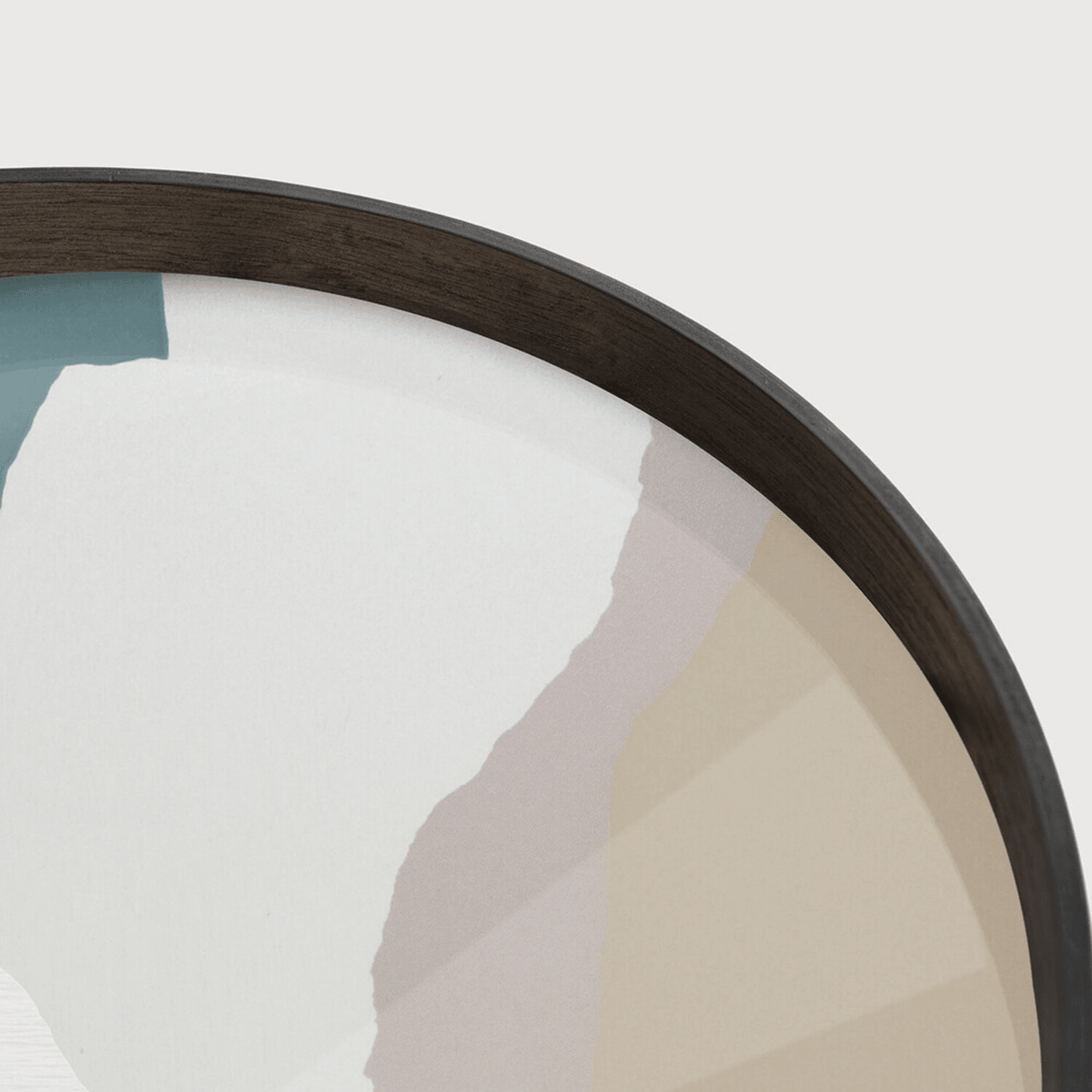 - Hand painted base - silk-screen printed glass - wooden rim.