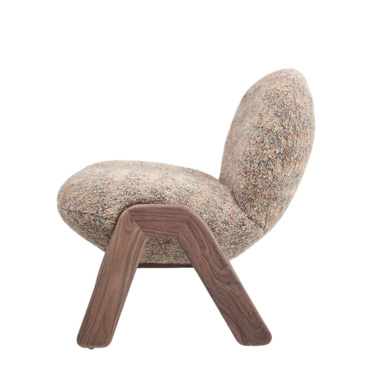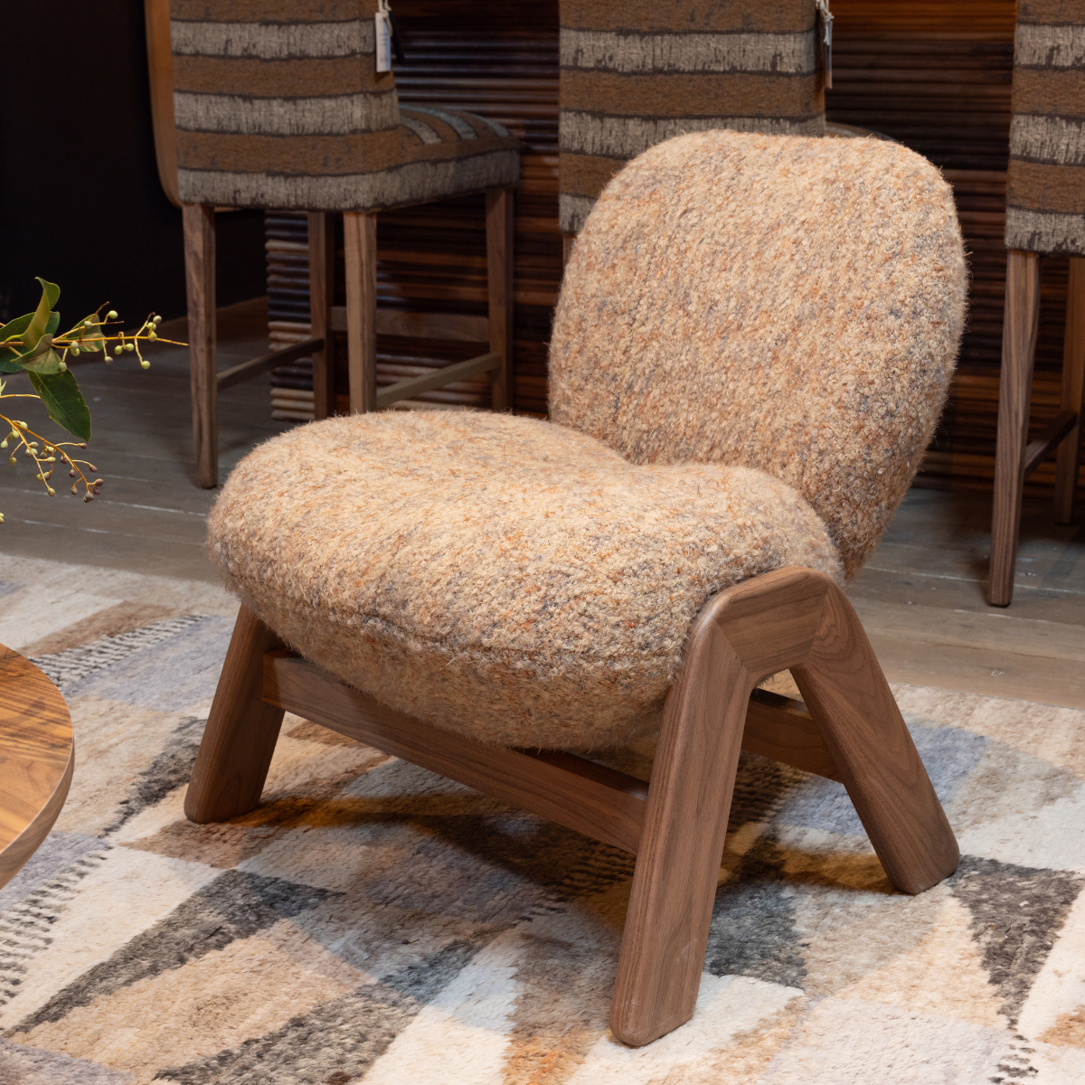 The Cosmo Chair features a modern, sculpted design with a generously supportive yet soft back and seat, all supported by a sleek, solid wooden frame.