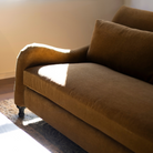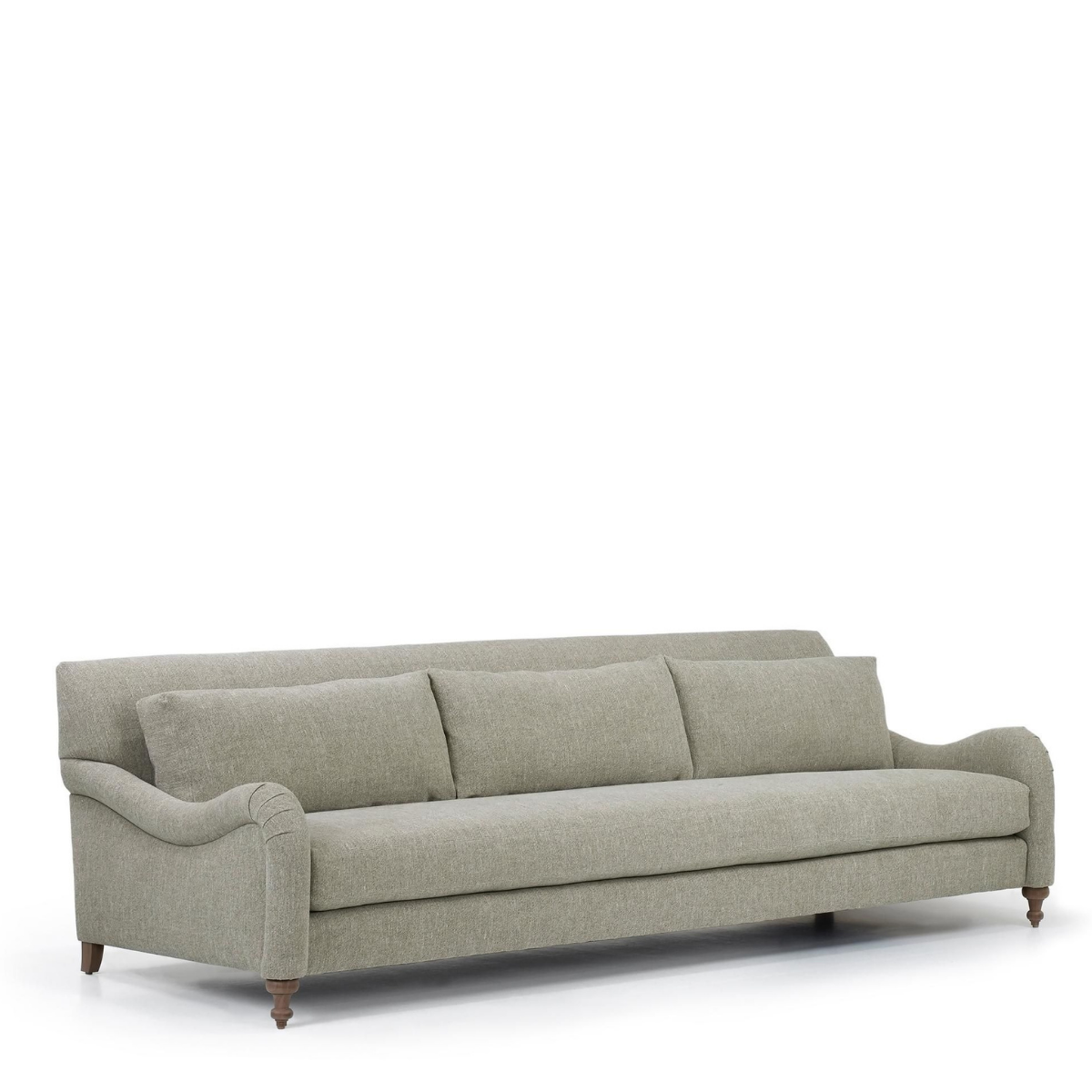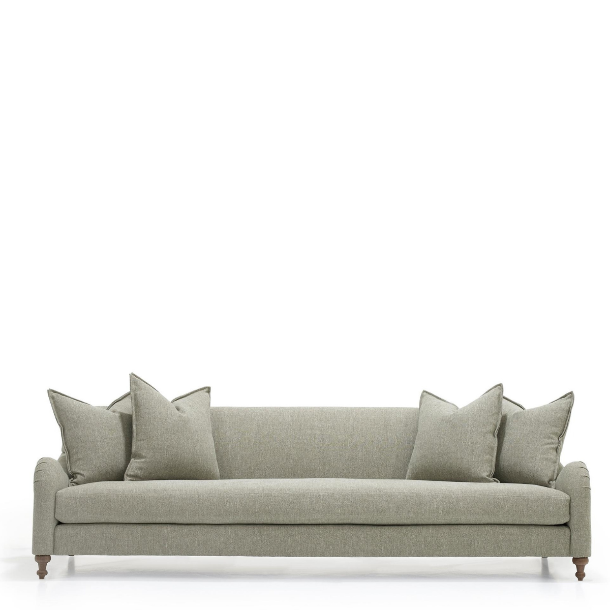 The Margot sofa collection features a classic design with elegant, rolled arms, loose boxed seat cushion, and turned wooden legs. Available as a tight back with options for either boxed loose back cushions or toss pillows, offering a timeless and sophisticated addition to any living space.