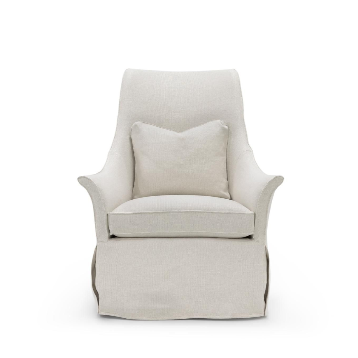 The Melody Wing Chair features a gracefully contoured silhouette with elegant curved arms, a high supportive back. Available slipcovered or upholstered.