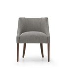 The Melvin Dining Chair captivates with its elegantly curved back, sleek armrests, and a contoured tight seat, combining modern sophistication with inviting comfort.