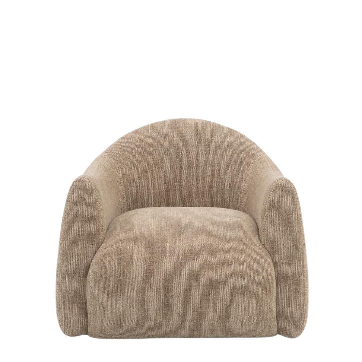 The Mina Swivel Chair enchants with its smooth, rounded silhouette, gentle curves, and a tight waterfall seat cushion.
