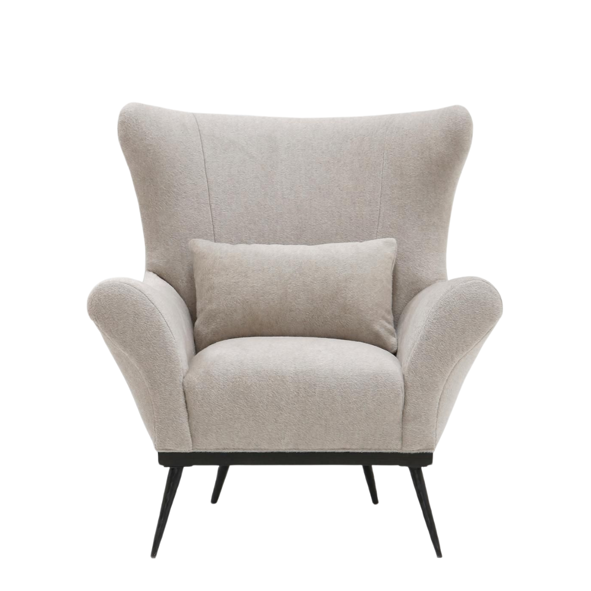 Offering an inviting blend of elegance and comfort, the Paola Wing Chair features a gracefully flared back, sweeping armrests, and plush tight seat cushion.