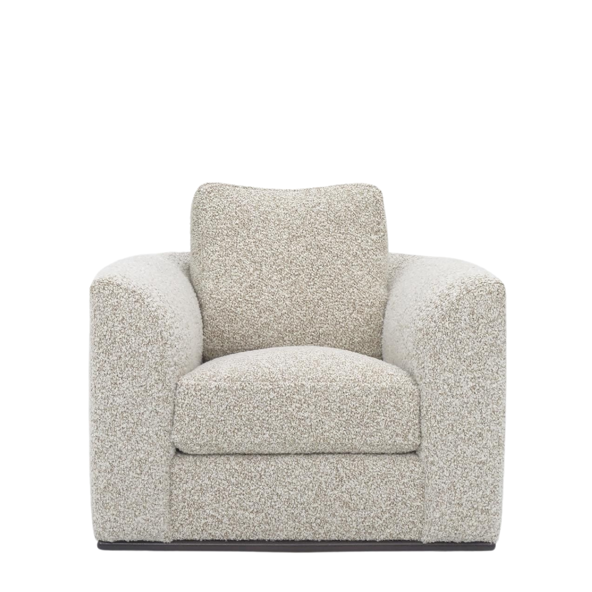 The Sophia Swivel Club Chair showcases elegant lines with a loose bench style seat and plush back pillows offering superior comfort. Available with ash, walnut, or oak exposed wood base.