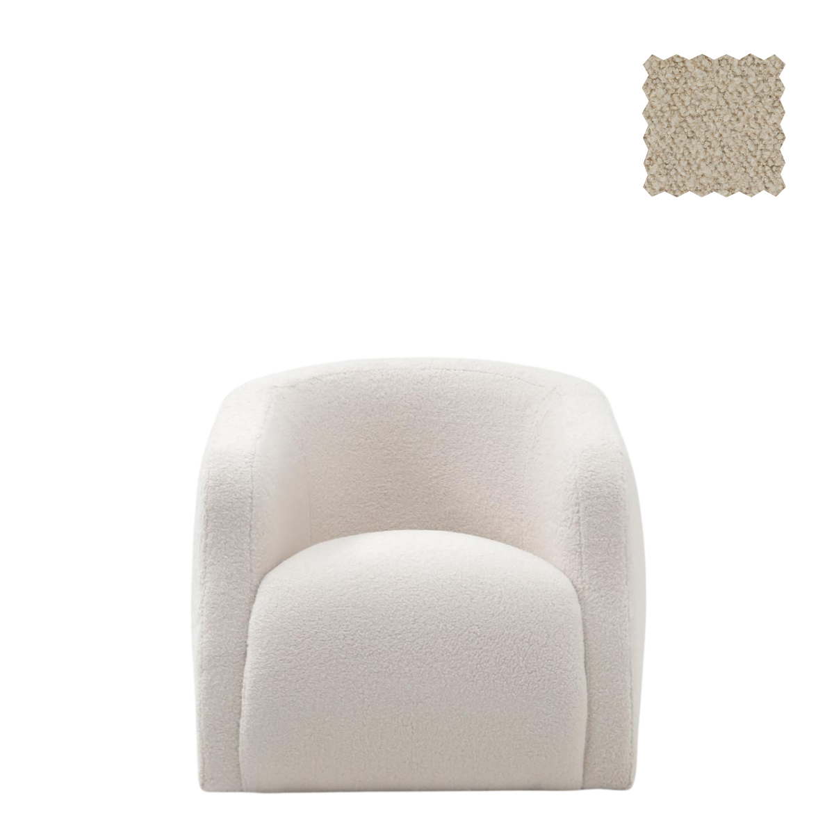 The Theo Swivel Club Glider features a curved, enveloping backrest and a smooth, continuous silhouette, offering a comfortable and stylish seating option.