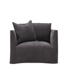 A classic Verellen piece, the Thibaut Chair, boasts a contemporary design with slightly tapered arms, a low tight seat, and plush loose back cushion.