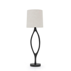 The Urbino Floor Lamp is an organically shaped lamp with a circular base. The body of the lamp starts at the base as a single round stem which splits off into two and rejoins at the bottom of the diffuser creating negative space in the middle of the lamp body.