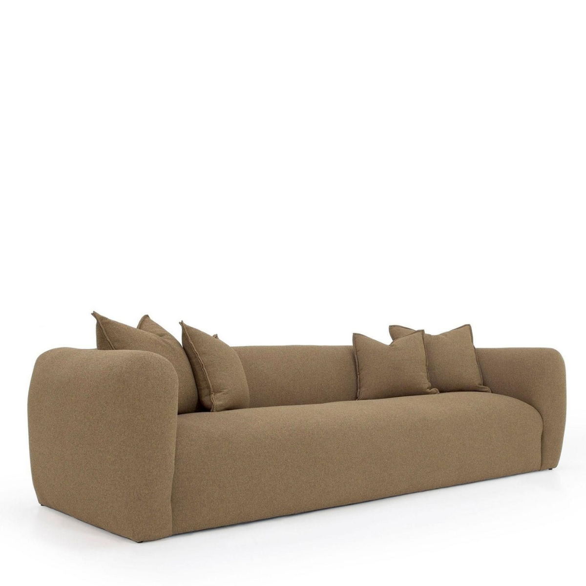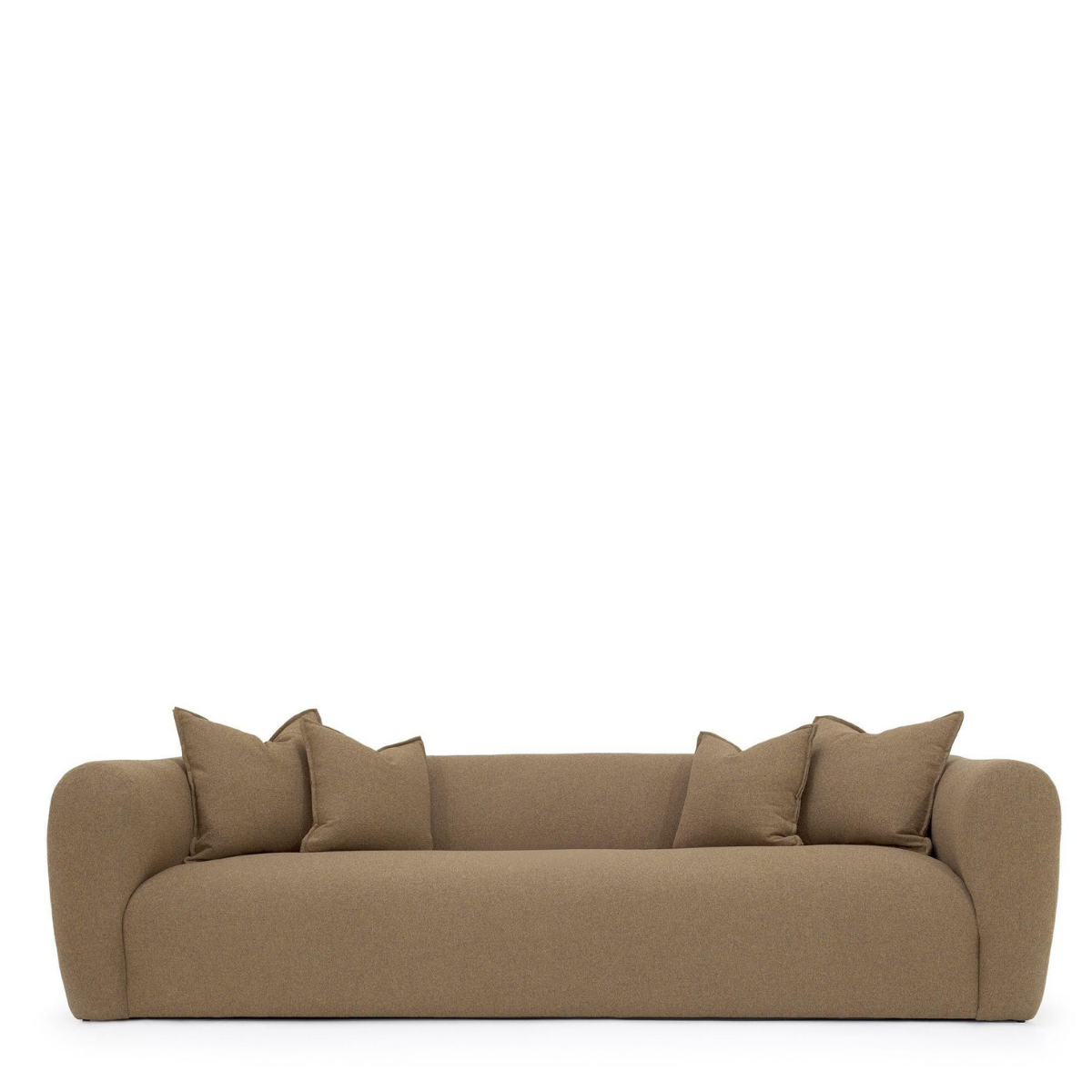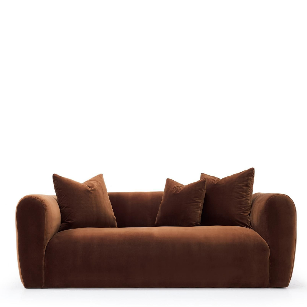 The Zola sofa collection features a modern, rounded design with plush, curvy arms and a deep, inviting seat, complemented by a tight back for added comfort and style.