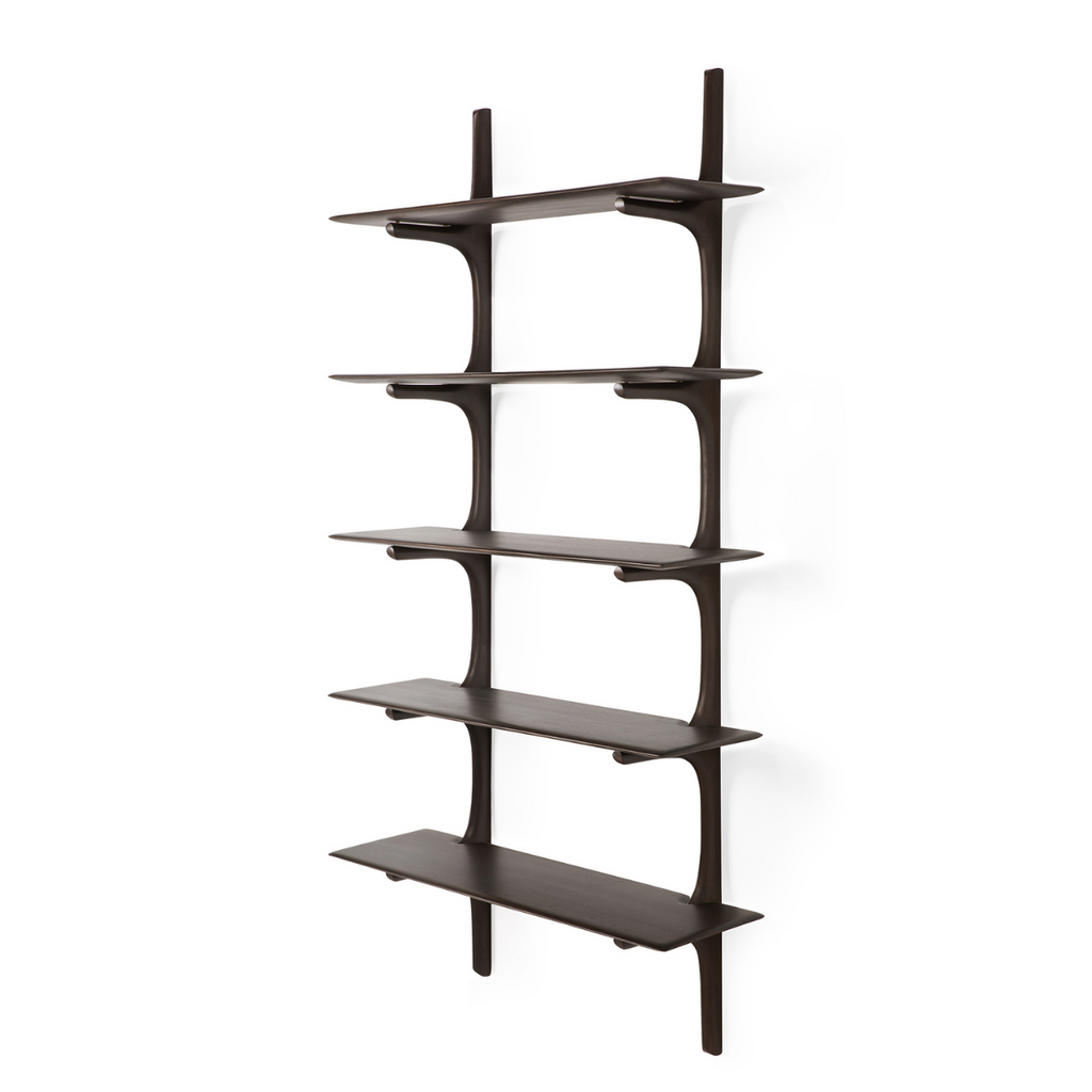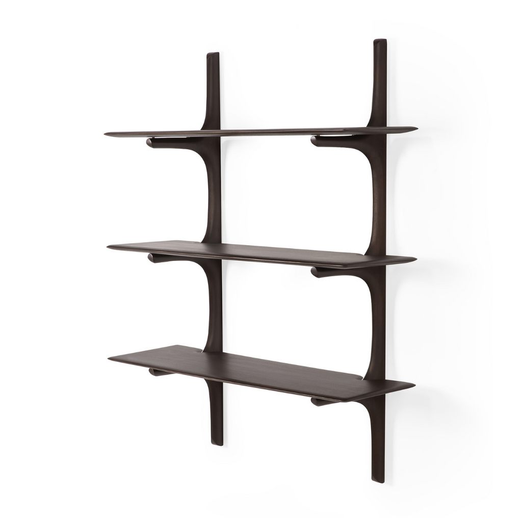 The PI collection honors nature’s design, by keeping the strength, curves, and lines, as nature intended. Interesting shapes are discovered in this sleek and stylish, polished imperfect, finish. Each PI shelf is finished by hand to ensure that the individual character of the wood is respected. Designed by Alain van Havre.