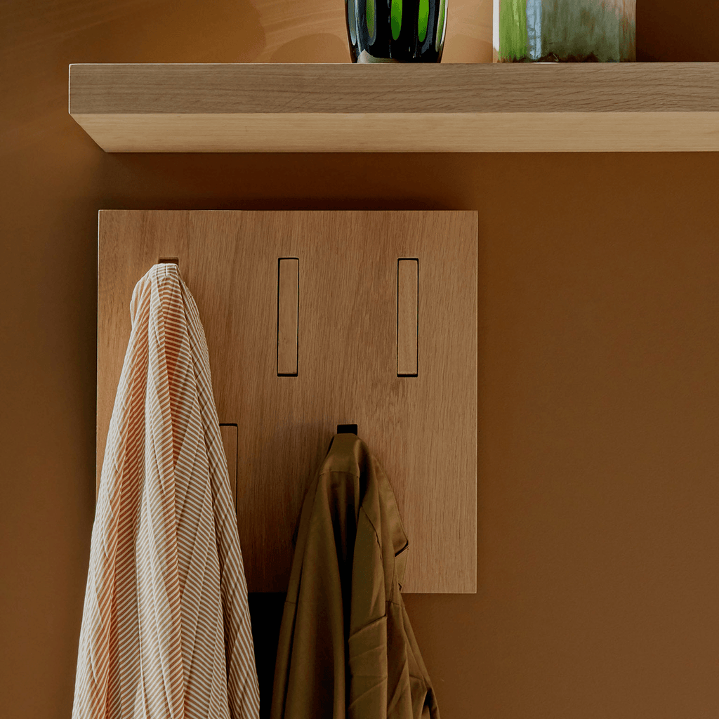 The Utilitile wall hanger perfectly combines form and function. This minimalistic solid oak coat hanger is a great option to elevate your hallway and optimize wall space to hang your coats and accessories.
