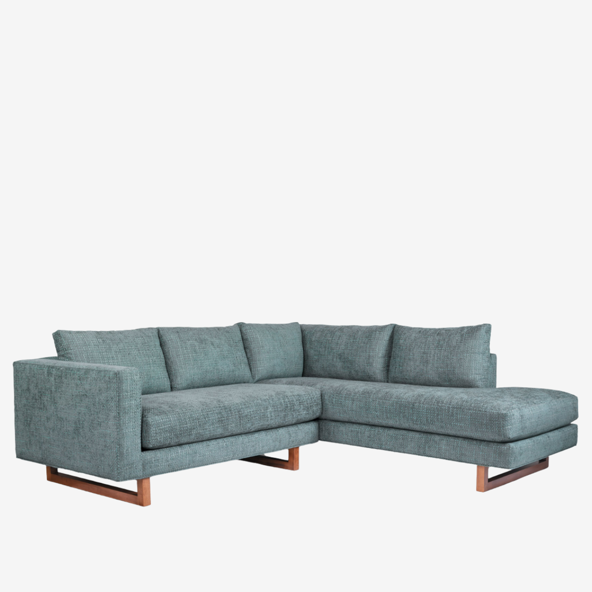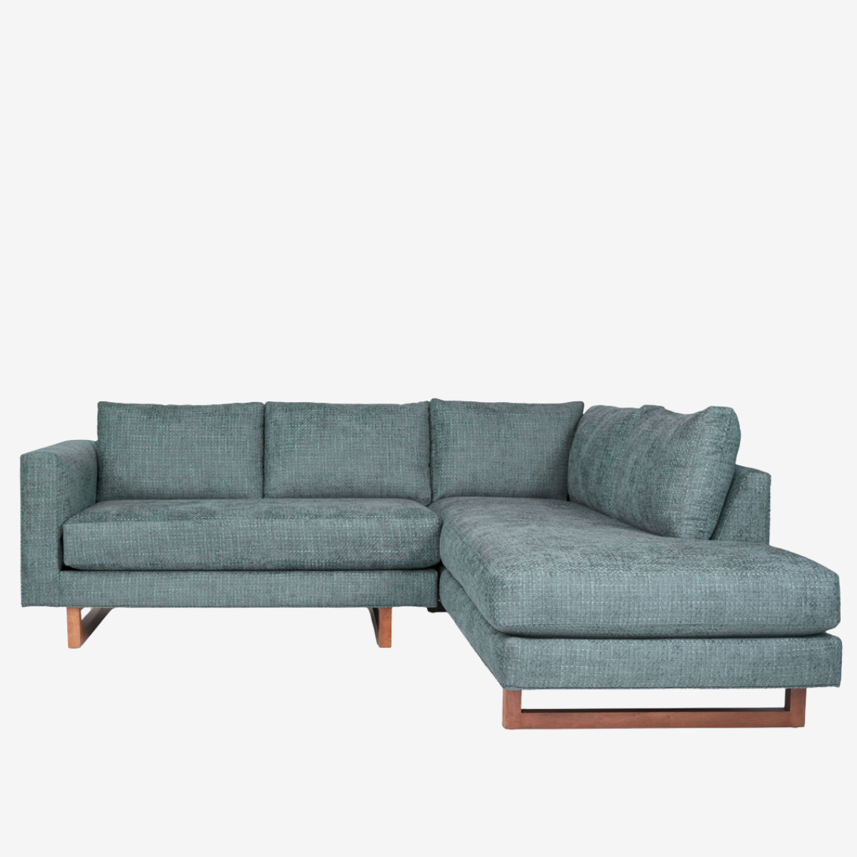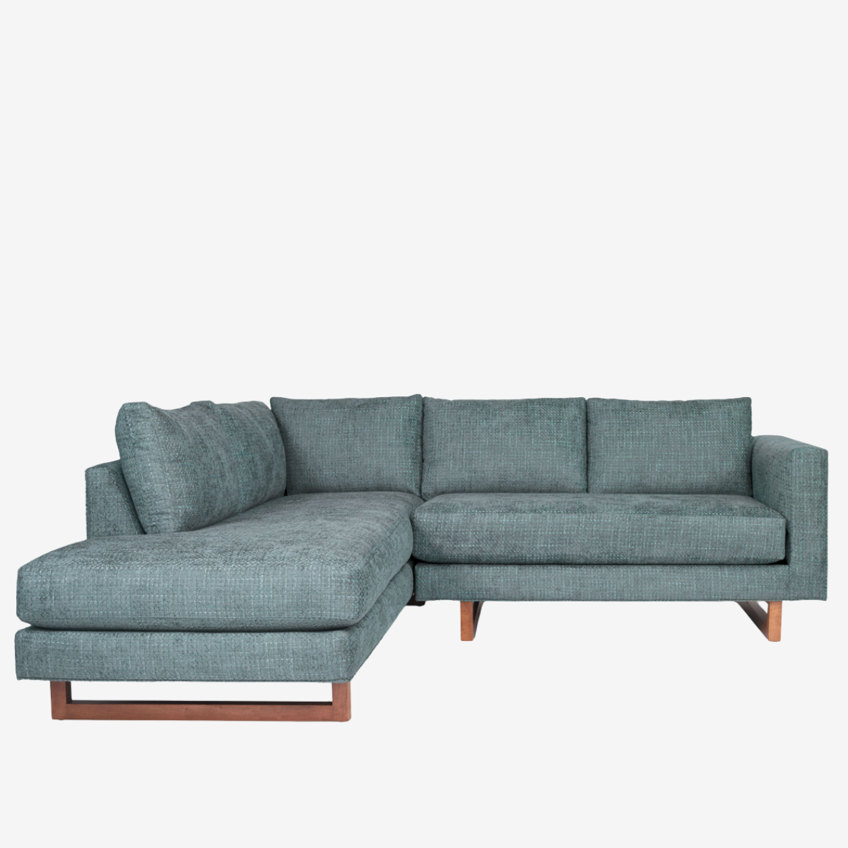 Easily adaptable to many home environments, thanks to its twenty-five configurable pieces, the Beam sofa provides generous cushions for comfort with a modern scale that makes it suitable for new and old homes. The pairing of wood sled legs with the large divided cushions creates a sophisticated presentation that brings the perfect blend of unique style to a living space.