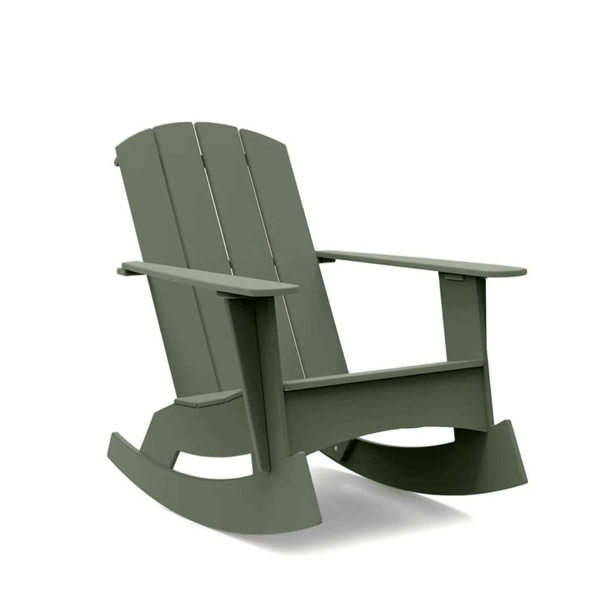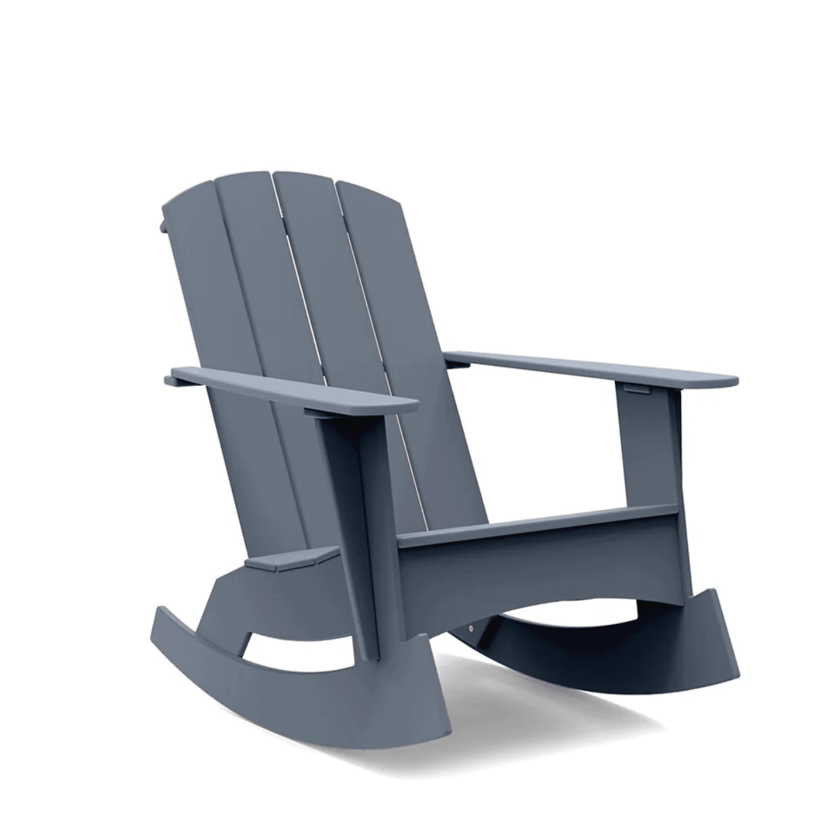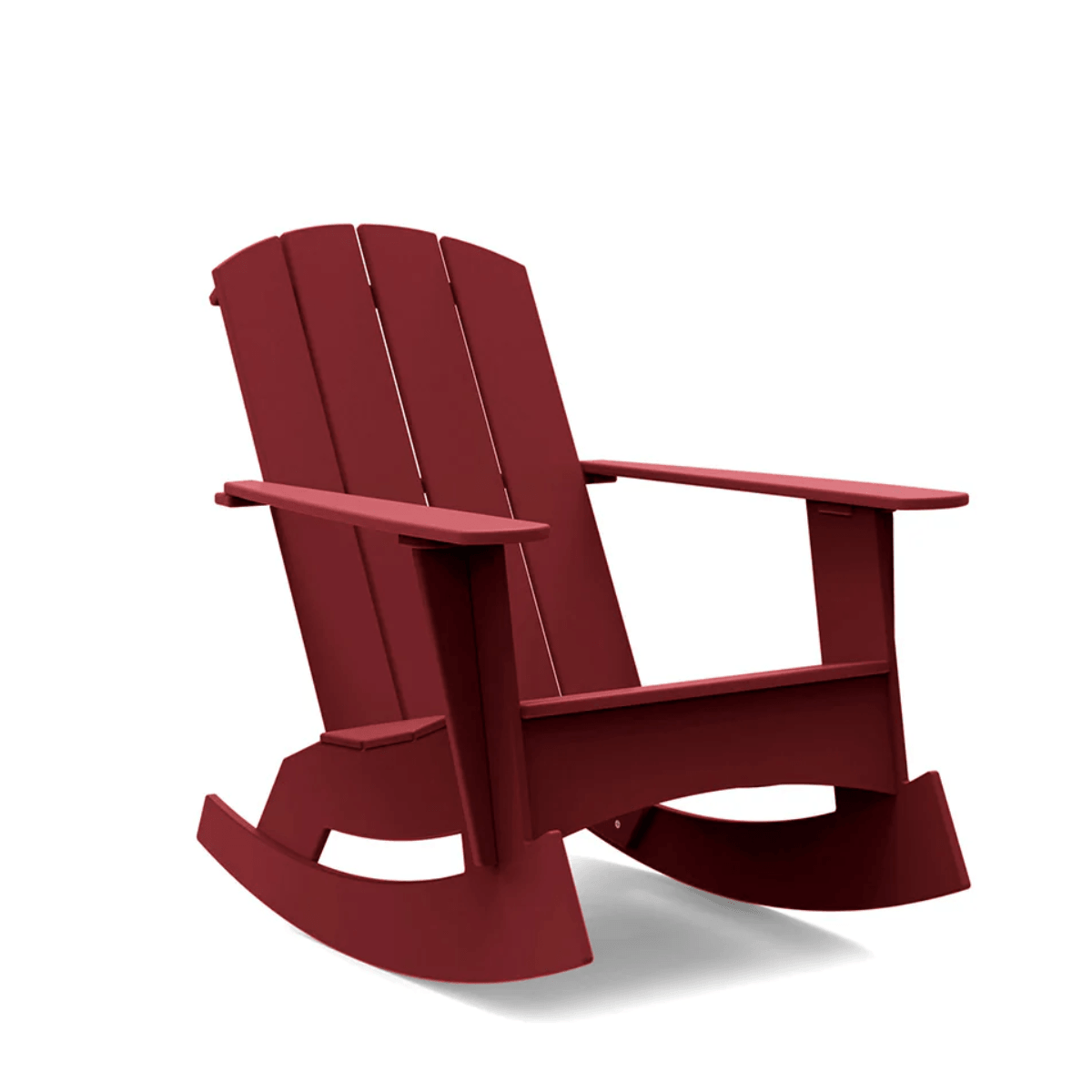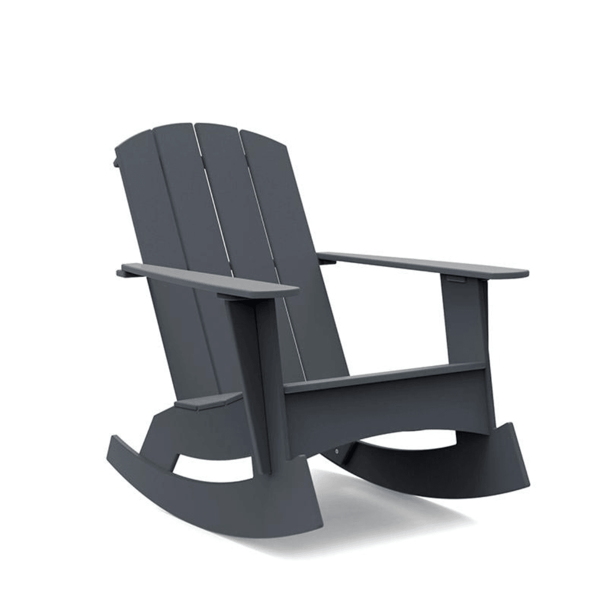 Designed with an exaggerated rocker silhouette, this modern rocking resin Adirondack chair will put a smile on anyone’s face and might just loll you into another realm. The thin profile of the recycled plastic gives this chair a refined modern quality, and nearly every stainless fastener is hidden.