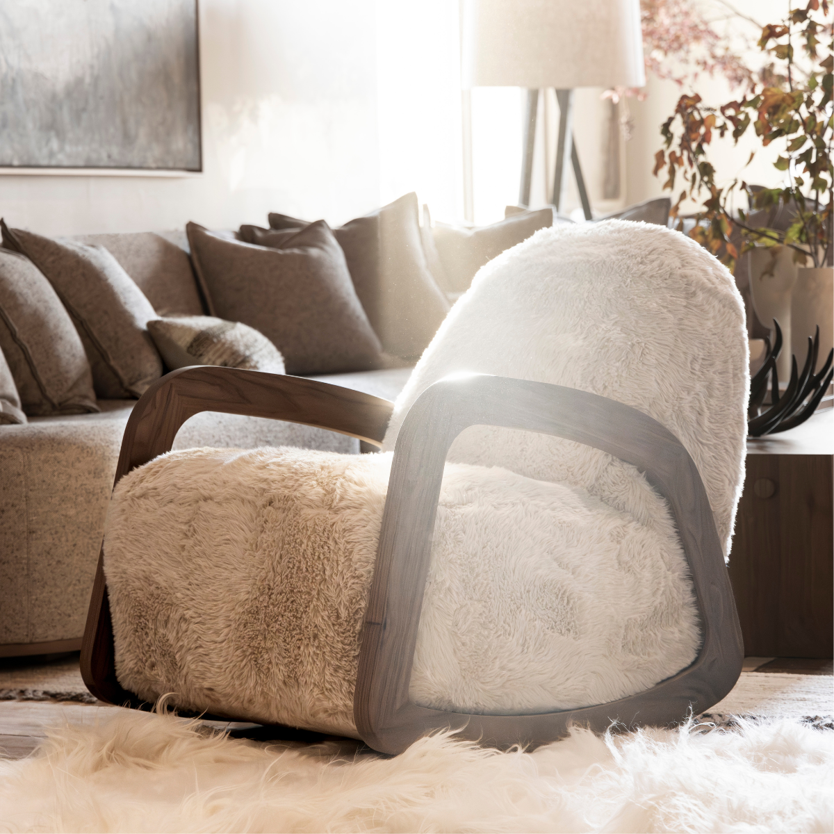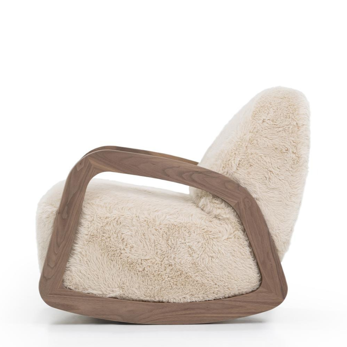 The Arthur Rocker (w/ Arms) features carefully sculpted, exposed wood arms in an open-frame design, blending modern elegance with organic flow. Its tight seat and back offer a tailored, clean profile, while the chair's gentle rocking motion and durable construction make it both a stylish and functional statement piece.