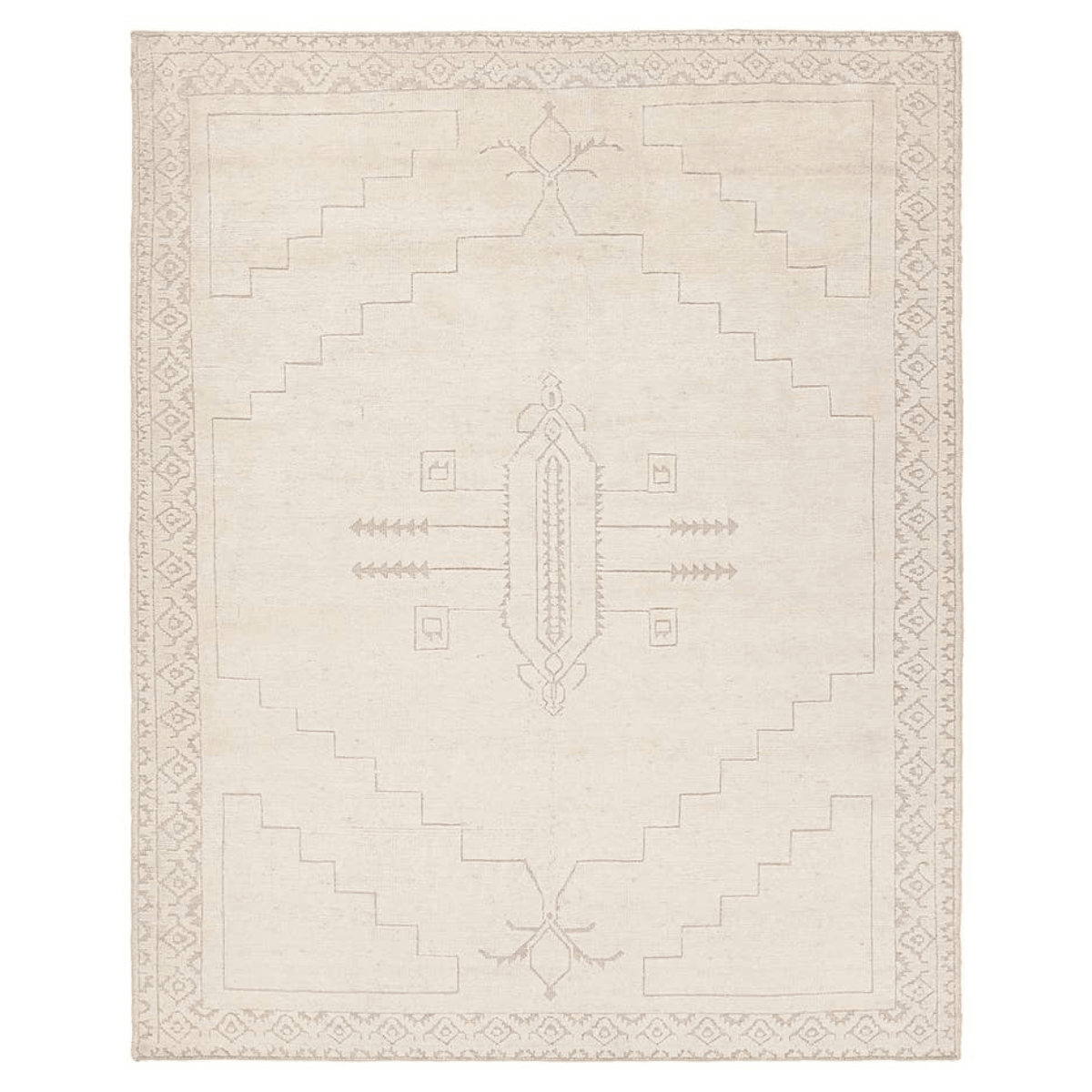 Hand carded wool, soft Tencel, and a neutral color palette define the handknotted Ashend collection. The Imbar rug showcases a Moroccan-inspired center medallion in a neutral, cream, taupe, and beige colorway. Geometric detailing via high and low pile establishes a thin border and provides a nod to the tribal styles of northern Africa. This accent piece provides comfort underfoot while adding texture to low traffic spaces of the home such as bedrooms, formal living areas, formal dining areas, and sitting rooms. Expertly handcrafted in India, this rug is certified by both Nest and RugMark, assuring ethical luxury.