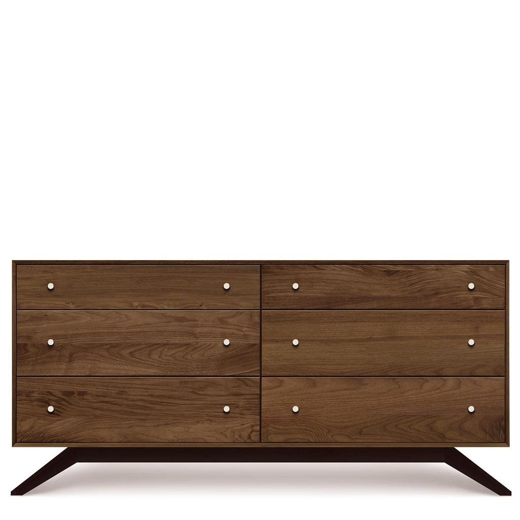 With its deeply splayed legs producing dramatic cantilevers, the Astrid Dresser is an engineering feat that defies expectations and inspires a sense of possibility. Astrid dressers and chests feature solid wood throughout and soft-close, self-close full extension drawers. Includes a Drawer Interlock System which allows only one drawer per vertical column of drawers to be open at a time as a safety feature.